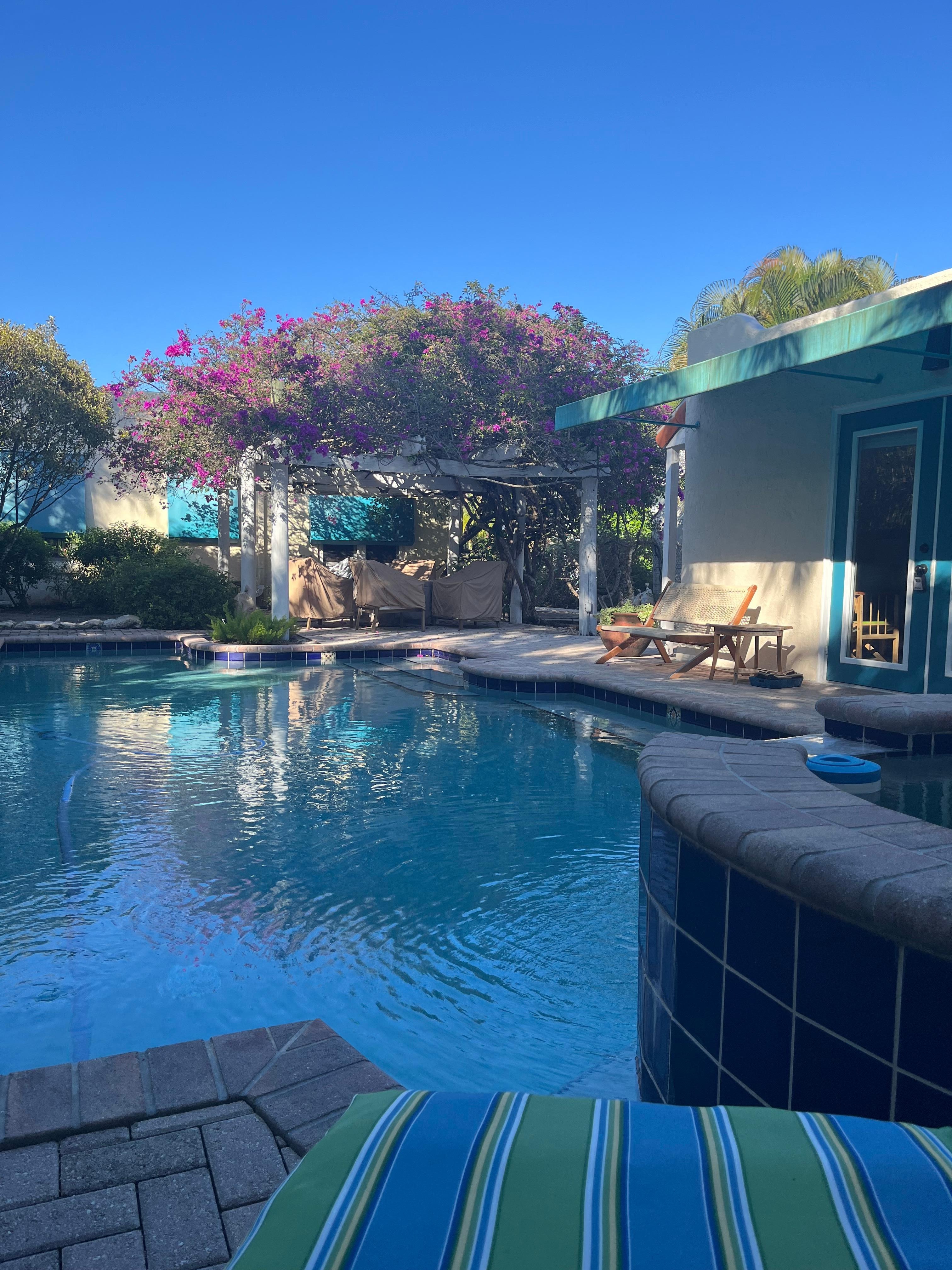What truly sets this cottage apart is the very private tropical garden oasis just outside your door. Surrounded by Florida native plants, you'll feel like youâve stepped into your own secluded paradise. Enjoy the sparkling pool and non-jetted spa for a refreshing dip or evening soak.