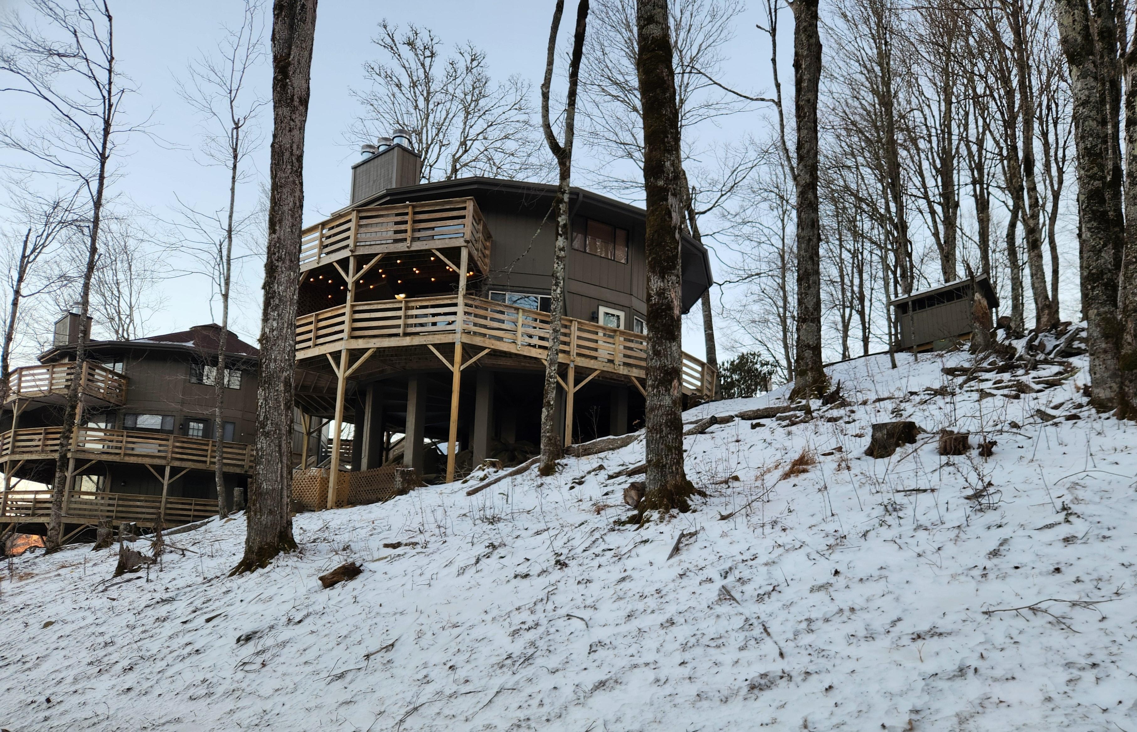 Welcome to Treehouse in the Sky a beautiful, newly updated, private 1 bedroom villa nestled up in the trees on Sugar Mountain. Enjoy nature from high elevations both indoors and out when you stay in this unique, one of a kind place. Close to all this area has to offer, we are 4322' up in the mountains for cool breezy air in the Summer and snowy conditions to enjoy in Winter! Tons of activities just waiting outside your door with exciting adventures or you can choose to stay in and cozy up. Treehouse in the Sky is a one-bedroom villa with a comfy king sized bed in the master, a full bathroom with a bathtub, open living dining area with a modern kitchen that is fully stocked including a Keurig with a variety of k-cups, a smart tv, in unit washer/dryer and much more. There is a queen sleeper sofa and an easy to use gas wood stove for you to enjoy. There are beautiful floor to ceiling windows that offer an expansive wooded view right from the couch or you can step outside on your private wraparound deck to enjoy the outdoors. There is room to store your skis/snowboards or bikes etc on the far end of your private deck. Enjoy stunning views of the ski slopes right from our parking area. We're just a short, easy half-mile walk to the base of the resortâor if you prefer, the complimentary shuttle will pick you up and drop you off right at the entrance. Treehouse in the Sky is perfect for 2 couples, a small family, or a group of 4 friends...come enjoy this gorgeous area and all it has to offer!