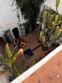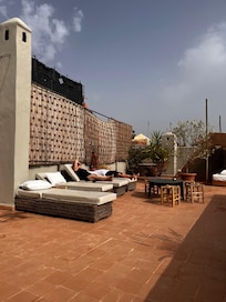 The traditional architecture of the building, the calming water feature in the central courtyard, the Jacuzzi, traditional Hammam and the amazing roof-top terrace.