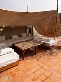 AprĂšs une journĂ©e, dĂ©tendez-vous dans ce havre de paix et de tranquillitĂ© avec un thĂ© Ă la menthe Ă l'ombre d'une des toits ou dĂ©tendez-vous sur une chaise longue avant de vous faire masser (d'autres soins peuvent Ă©galement ĂȘtre organisĂ©s)