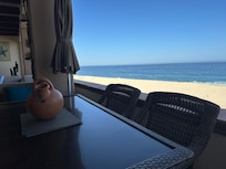 We chose La Luna 202 for many reasons. First of all, this unit is very private, quiet and Ocean Front. There is not a thing between this unit and the gorgeous Sea of Cortez--except about 100 feet of sand! We also were so impressed with the custom design of the unit, and how it really captures a mediterranean feel. This is wonderful for our family but also for renters traveling with two couples or children. Most of the 2 bedroom villas at this resort have one small master bedroom with the second bedroom directly behind it meaning the second bedroom does not have views or patio access. Also, other 2 bedroom condos have smaller living rooms or windy staircases (difficult to maneuver). We are just steps to the main pool and parking. However, because we are oceanfront we do not overlook the main pool which some of the other condos do--making our unit less likely to hear the resort or highway noise. We are also just a few steps to the famous Las Ventanas Resort from this condo as well--and we often head there for sushi or drinks in case we feel like something a little different but donât want to get in the car. Truly, this villa is the Perfect vacation spot and we invite you to stay at our home away from home.