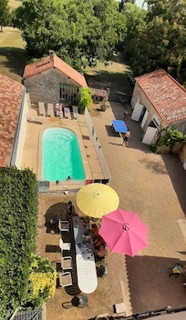 la maison d'Elise, ancienne maison de maßtre, avec sa petite dépendance et sa piscine privative et cloturée de 8.5 m x 3.5 m permet d'accueillir 16 personnes et se distingue par son élégance à la sortie du village, le parc est clos permettant ainsi aux enfants de jouer dans le jardin arboré sans encombres, la proximité des commerces permettant de laisser la voiture dans la cour.