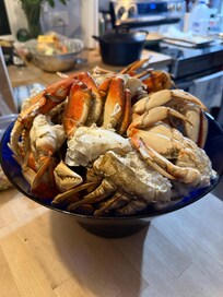 J'ai inclus quelques photos du sommet de Goose Rock, qui est la grande colline de l'autre cÎté de l'eau de la marina, et le sommet du mont. Erie, qui est à environ 15 minutes en voiture sur l'ßle Fidalgo, et quelques photos d'un bon dßner de crabe et de steak que nous avons eu l'été dernier.