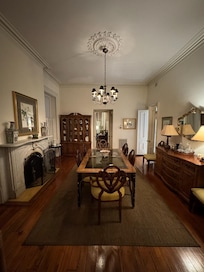Riche en dĂ©tails architecturaux, cette maison a des planchers de bois franc dâorigine, des cheminĂ©es en marbre et des plafonds de 12 pieds complĂ©tĂ©s par un mobilier majestueux. Profitez de la vue sur Jones Street depuis le confort de votre salon, oĂč une tĂ©lĂ©vision Ă Ă©cran plat est discrĂštement rangĂ©e dans lâarmoire. La salle Ă manger communicante a beaucoup de lumiĂšre et de beaux meubles anciens. La cuisine rĂ©cemment rĂ©novĂ©e est entiĂšrement Ă©quipĂ©e avec tout ce dont vous aurez besoin pour un week-end ou un sĂ©jour prolongĂ©, y compris une laveuse et une sĂ©cheuse.