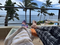 Lovely condo and deck overlooking the cove watching day and night scuba divers !