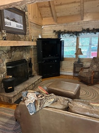 Les installations comprennent une télévision connectée de 40 pouces dans le salon avec cùble ainsi qu'un lecteur DVD Blue ray. La cabine dispose également d'Internet haute vitesse sans fil. Le salon avec son haut plafond spectaculaire, dispose d'une cheminée à bois avec beaucoup de bois disponible. La cuisine est entiÚrement équipée avec tout ce dont vous avez besoin pour faire un repas. Deux ponts couverts sont situés au-dessus d'un étang tranquille. Le pont du plancher principal a un barbecue Weber pour vos besoins de grillades ainsi que des chaises à bascule. Le chemin à cÎté de la cabine mÚne à un foyer extérieur. Un endroit parfait pour griller des guimauves et faire des smores avec les enfants. La zone de loft avec ses belles vues et coach confortable et une chaise fournissent l'endroit idéal pour se lover avec un livre ou un magazine de la mini-bibliothÚque en pleine croissance. En bas est l'endroit idéal pour se détendre aprÚs une longue journée sur les pistes ou les sentiers de randonnée. Il y a une table de jeu pour votre compétition de jeu de plateau préférée ou un jeu de cartes. Il y a aussi un autre grand écran TV et lecteur DVD. Une super salle pour les soirées cinéma. Ce téléviseur dispose également d'une PlayStation 2 connectée pour tous les joueurs de votre famille. Un chauffe-eau sans réservoir récemment installé signifie que vous ne manquerez jamais d'eau chaude.