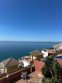Villa individuelle située à Nerja avec une vue fantastique sur la mer et les montagnes. La villa dispose de climatisation dans toutes les chambres et WiFi. Il y a une piscine privée avec une grande terrasse et six chaises longues. Il y a une grande terrasse hors du salon et une autre terrasse couverte hors de la cuisine, toutes avec des vues fantastiques. à l'avant de la villa, il y a une terrasse barbecue et un parking. Il existe également la possibilité d'utiliser la grande piscine commune et les jardins.
