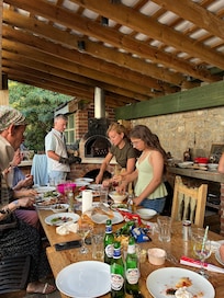 River House is not a normal 'holiday home' with the bare essentials. It is a real home, with a feeling of space that is warm, cosy and personal. Ornaments, decor and features are a legacy of our family living here since 1964. After inheriting River House in 2014, we have upgraded the house with 2 en-suite bedrooms and added features such as a glass floor panel overlooking the river flowing underneath, and a sheltered outside kitchen in the garden with a wood fired pizza oven & BBQ. Ayvin lives next door and is on hand to advise and help you get the most out of your stay.