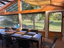 Juste à cÎté de la cuisine, vous découvrirez un salon / salle à manger supplémentaire récemment rénové. Ici, vous pourrez vous détendre sur le nouveau canapé-lit confortable et regarder un film. Rassemblez-vous autour de la table de la salle à manger avec des siÚges pour 6+ pour une bonne soirée de jeu en famille à l'ancienne ou savourez un repas fait maison devant la baie vitrée avec vue sur le lac.