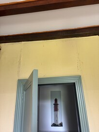 A l'étage une plus petite chambre peut accueillir 2 simples + douche / WC