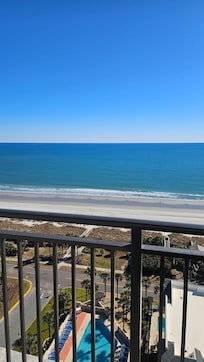 SituĂ© au 17Ăšme Ă©tage, profitez de la vue directe sur l'ocĂ©an depuis nos hautes chaises Adirondack et admirez les dauphins qui nagent le matin. Avec une cuisine bien Ă©quipĂ©e, une cafetiĂšre Keurig et ordinaire, des appareils Ă©lectromĂ©nagers en acier inoxydable et des comptoirs en granit, vous pourrez vous restaurer ou vous rendre dans l'un des excellents restaurants Ă proximitĂ©. Belles planchers de tuiles partout, y compris le balcon surdimensionnĂ©. Avec un lit king size et un lit queen, Mere Vista peut confortablement dormir jusqu'Ă quatre. Grande tĂ©lĂ©vision murale dans le salon et la chambre, avec wi-fi et le cĂąble. La salle de bain dispose d'une grande douche Ă l'italienne qui peut ĂȘtre entrĂ©e depuis la chambre ou le couloir.