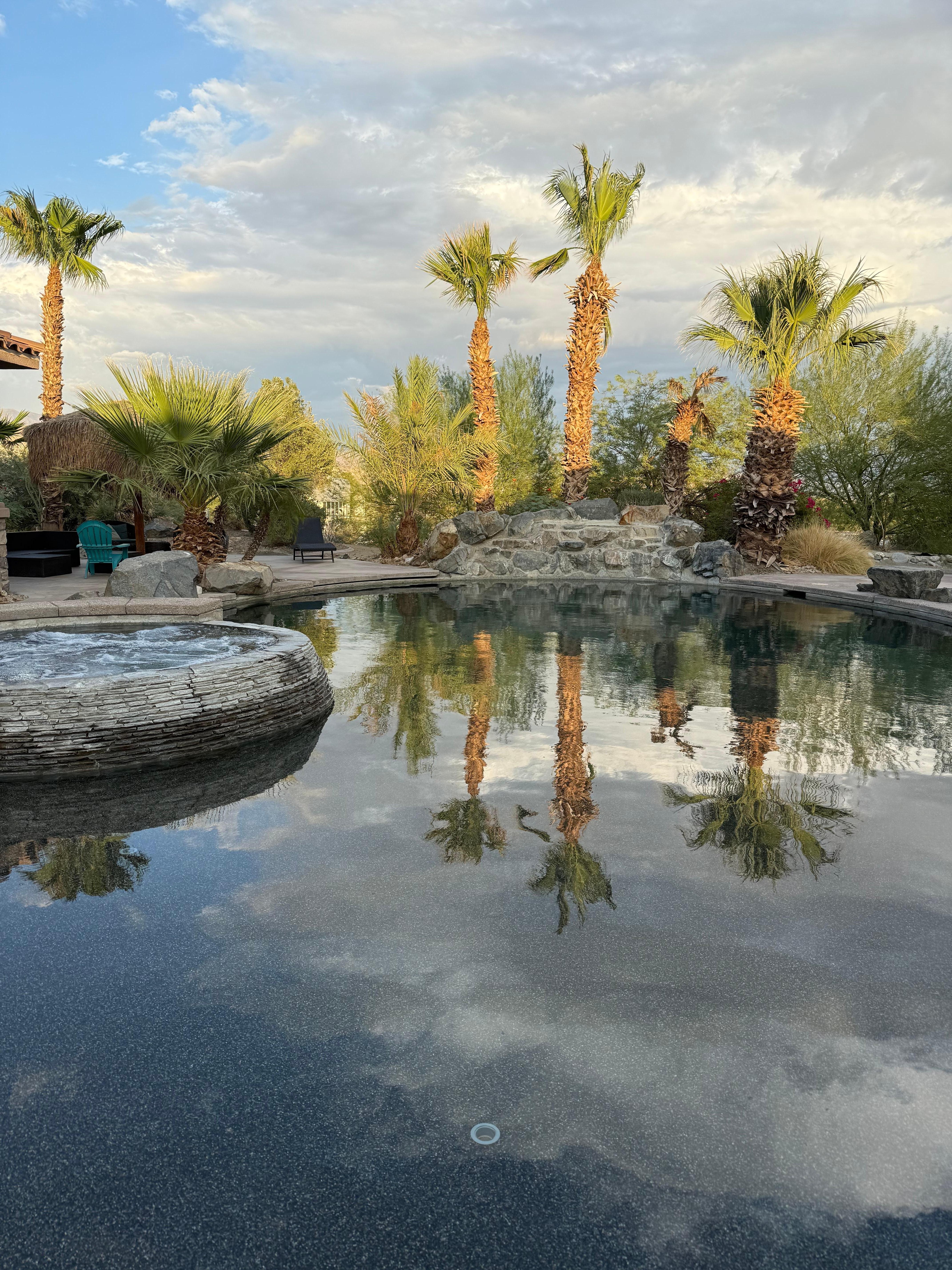 La maison est une coutume construite prÚs de 3 hectares. Cette belle maison à quelques minutes de Palm Desert et Rancho Mirage avec un accÚs FWY trÚs proche. Les appareils de cuisine haut de gamme comprennent une table de cuisson Wolf à 6 brûleurs, un réfrigérateur Subzero, un double four, un lave-vaisselle, un lave-linge et un sÚche-linge, des comptoirs en granit, un grand bar circulaire avec machine à glaçons pour un espace de réunion idéal à la maison. Chaque chambre à coucher est autonome avec salle de bains privée, lits king size, linge de maison, commodes et tables de chevet, décorée professionnellement, HDTV fixée au mur à écran plat dans chaque chambre à coucher, Direct TV, accÚs Internet et salle de séjour avec canapé confortable HDTV. La suite principale comprend une grande salle de bains avec double vasque, dressing, une douche en ardoise avec plusieurs pommes de douche et une baignoire à jets pour occupation double. TrÚs grande piscine lagon de style plage et spa avec grande cascade de roches, foyer à gaz, grand barbecue à ßlot de gaz avec palapa et terrasse.