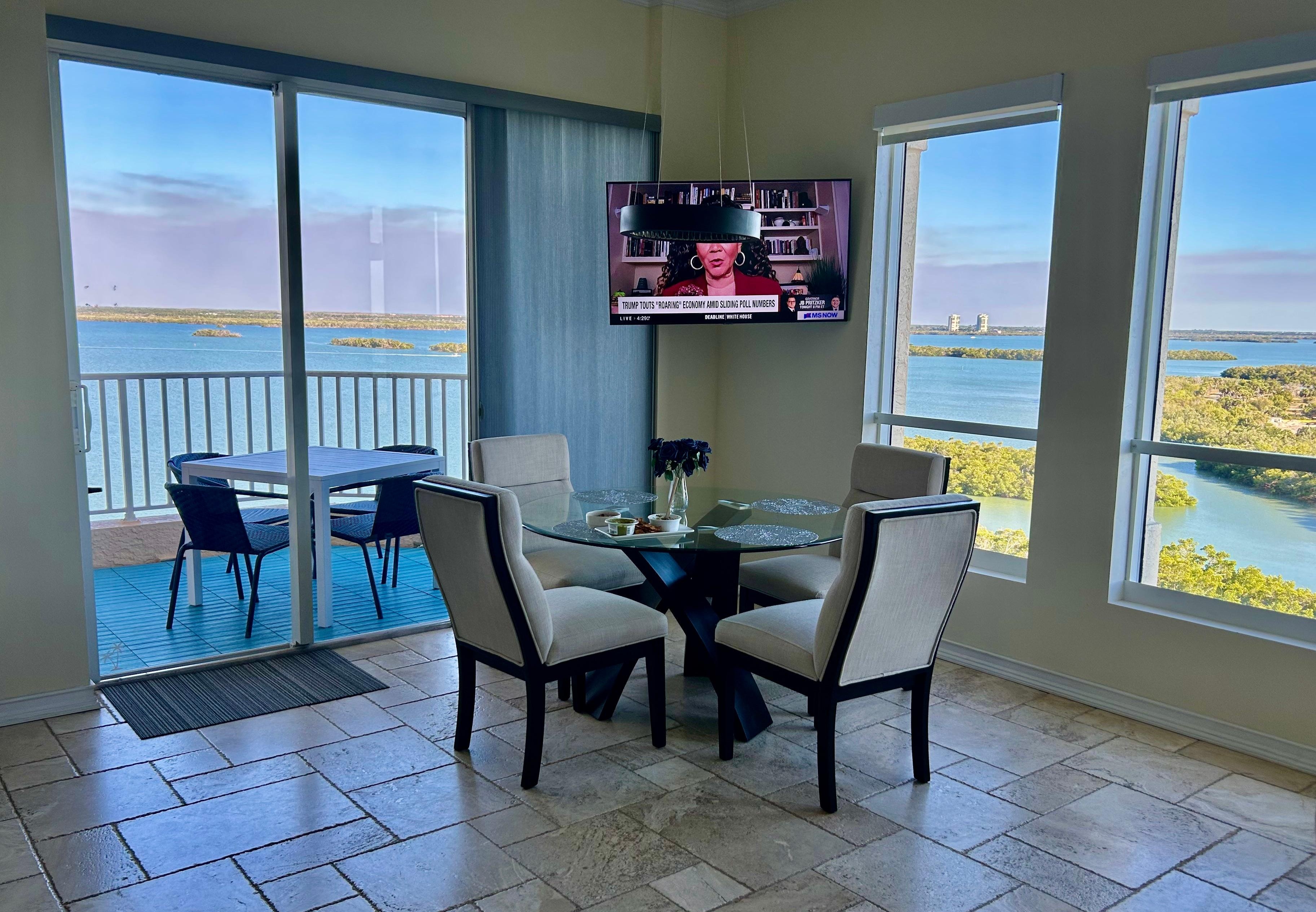 Depuis votre balcon privĂ© au sommet de la tour de la station, vous profiterez de levers de soleil tĂŽt le matin sur la baie d'Estero qui vous couperont le souffle! Depuis les vastes fenĂȘtres du salon et de la chambre, vous voyez l'Ăźle noire, le parc d'Ătat Lovers Key et le golfe au loin. En raison de son emplacement sur l'Ăźle, le balcon donnant sur la baie est particuliĂšrement paisible et les observations de la faune indigĂšne de la Floride ne sont pas rares - les dauphins, les lamantins et les oiseaux tropicaux sont susceptibles de faire votre connaissance lors de votre visite!