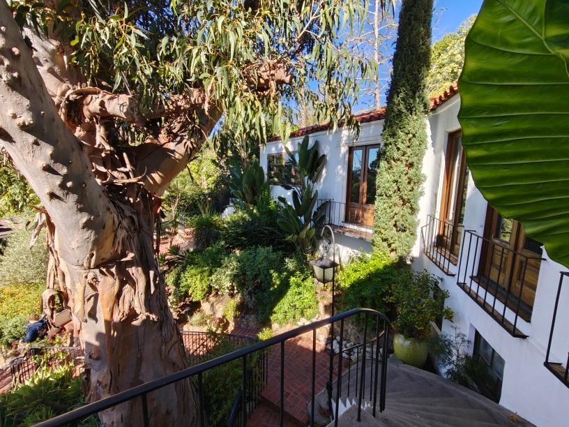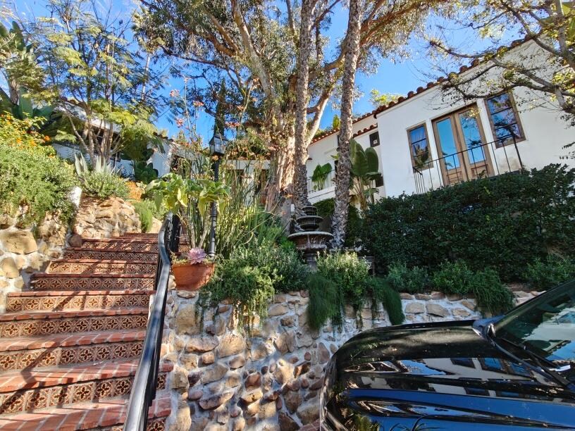 As soon as you park your car in our wide, brick-paved driveway - be greeted by our grand outdoor entrance with 3-tier water fountain and sweeping staircase.. Welcome to our 5-star Casa Escalera located in the Hollywood Dell neighborhood of the Hollywood Hills! 3 miles to Universal Studios, Lake Hollywood Park/Hollywood Sign hikes, Runyan Canyon Hike and walk to the Hollywood Bowl. 4.5 mi Griffith Observatory and 7 mi to downtown LA.