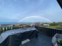 This wonderful coastal retreat has four beautifully appointed bedrooms â the master with ensuite and its own ocean views â together with a range of comfortable break-out areas in which to relax. Find yourself in front of the open fire enjoying a glass of red watching the wind whip the ocean, or taking in some well-earned Vitamin D on the deep balcony which encircles the house, or retiring to the quiet garden area where steaks are sizzling on the barbecue.