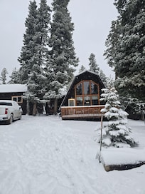 FAQ: Pet fee (paid pre-trip), steps to access property, bedroom & bathroom on 1st floor, 4 exterior security cameras (facing out), 4WD recommended in winter, no A/C