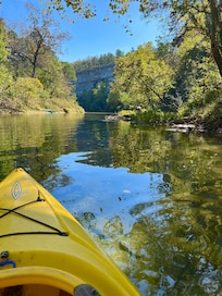 We fell in love with this property at first sight. It is secluded, unspoiled, and diverse. Thereâs the beautiful spring-fed creek, towering limestone bluffs, abundant wildlife, and trees everywhere. Frankly, we never intended to rent it, but we decided to share it with families who are looking to âget away from it all.â At first, we had no phone, no TV, and no internet. Now we have modern conveniences, but we urge you to get outdoors and forget all about them! The cabin sits on 14 acres, and we have another 37 acres of surrounding land. You will truly feel like youâve left the rest of the world behind you when you drive through the gate. There are many other rental cabins in the Ozarks, and some are quite beautiful, but do you really want to hear the people next door? If not, this is the place for you!