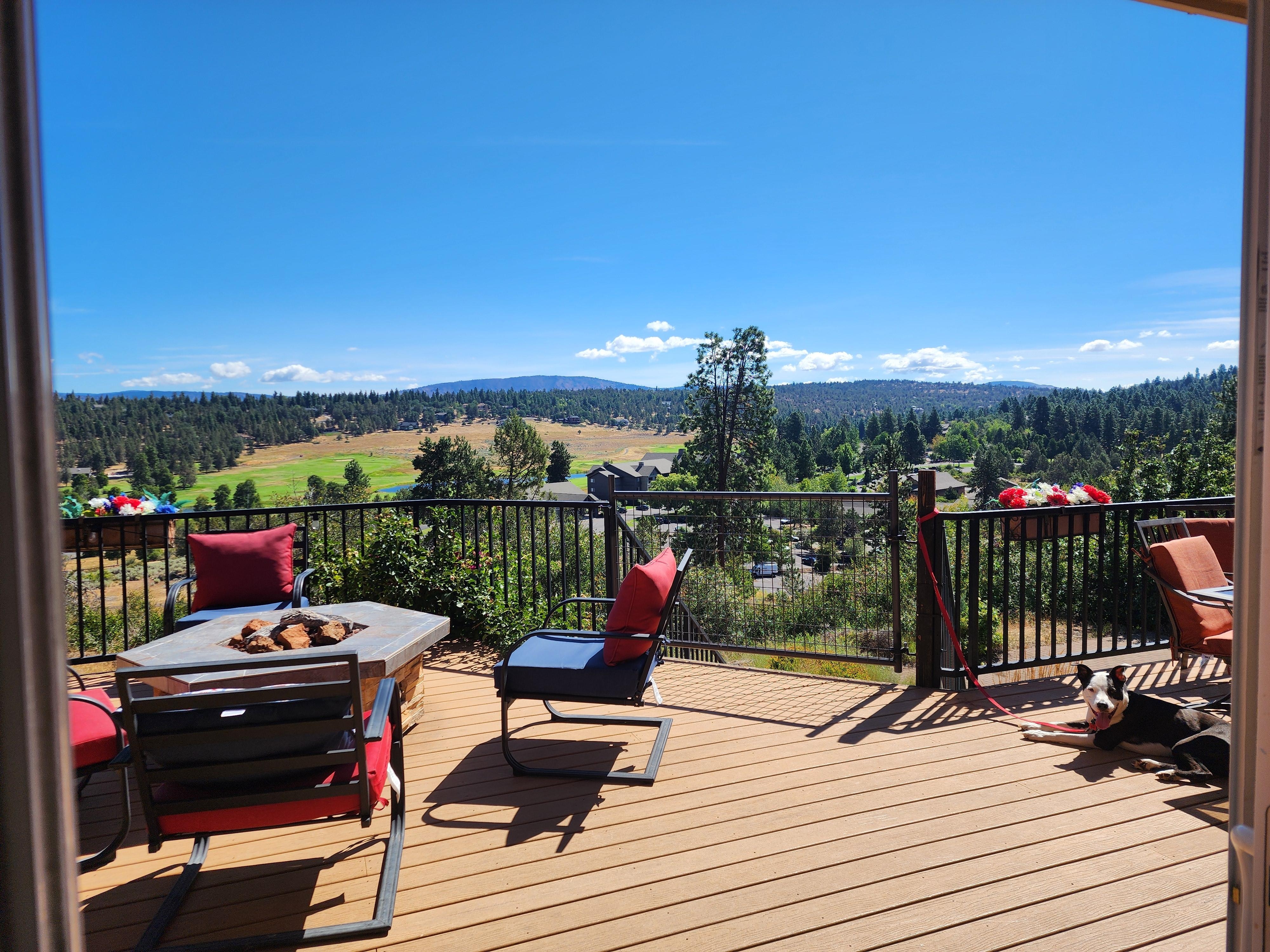 The patio is perfect for hosting family get togethers or just sitting by the fire pit. You will enjoy the gorgeous view of the Running Y Resort from the patio. You can grill on the deck and enjoy the patio table as you dine.