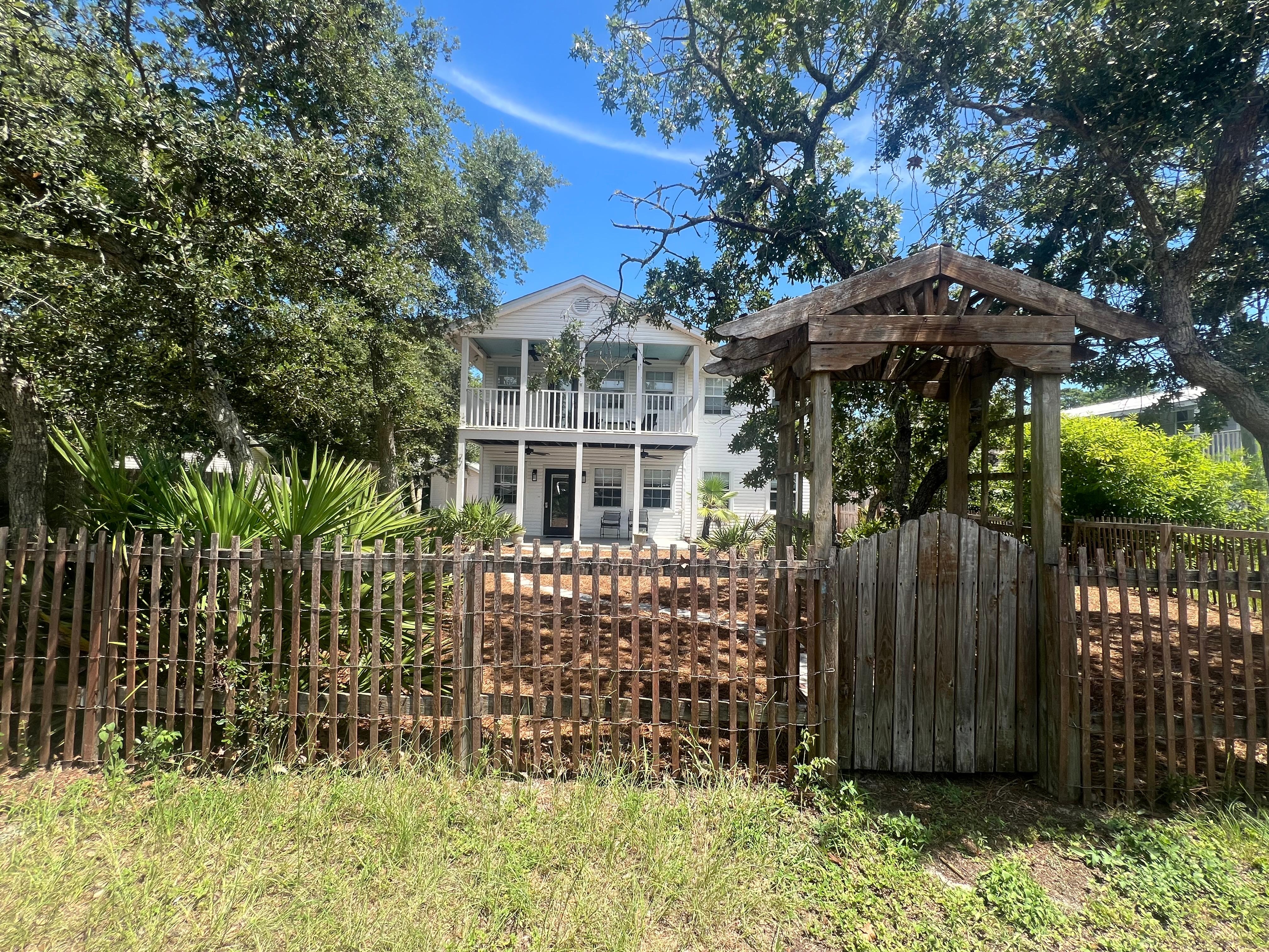 Centrally located in Santa Rosa Beach, this stunning, 1600 sq ft, traditional, Florida reverse living design home offers guests close walkability to the city's excellent coffee shops, restaurants, and stores. Visitors who want to stay awhile can immerse themselves in all the sights and conveniences connected to this lovely, snowbird-friendly vacation home. For easy travel, a bike and electric vehicle rental is right around the corner. When out and on the go, peaceful hikes can be taken at Topsail Hill Preserve State Park and Grayton Beach State Park, days by the sun, sand, and surf can be relished at Blue Mountain Beach and Miramar Beach, and swing practice can be indulged in at the Raven Golf Club. When you want to simply enjoy the radiant Florida sunshine, take a quick walk over to the designated beach access point, just a stone's throw away.