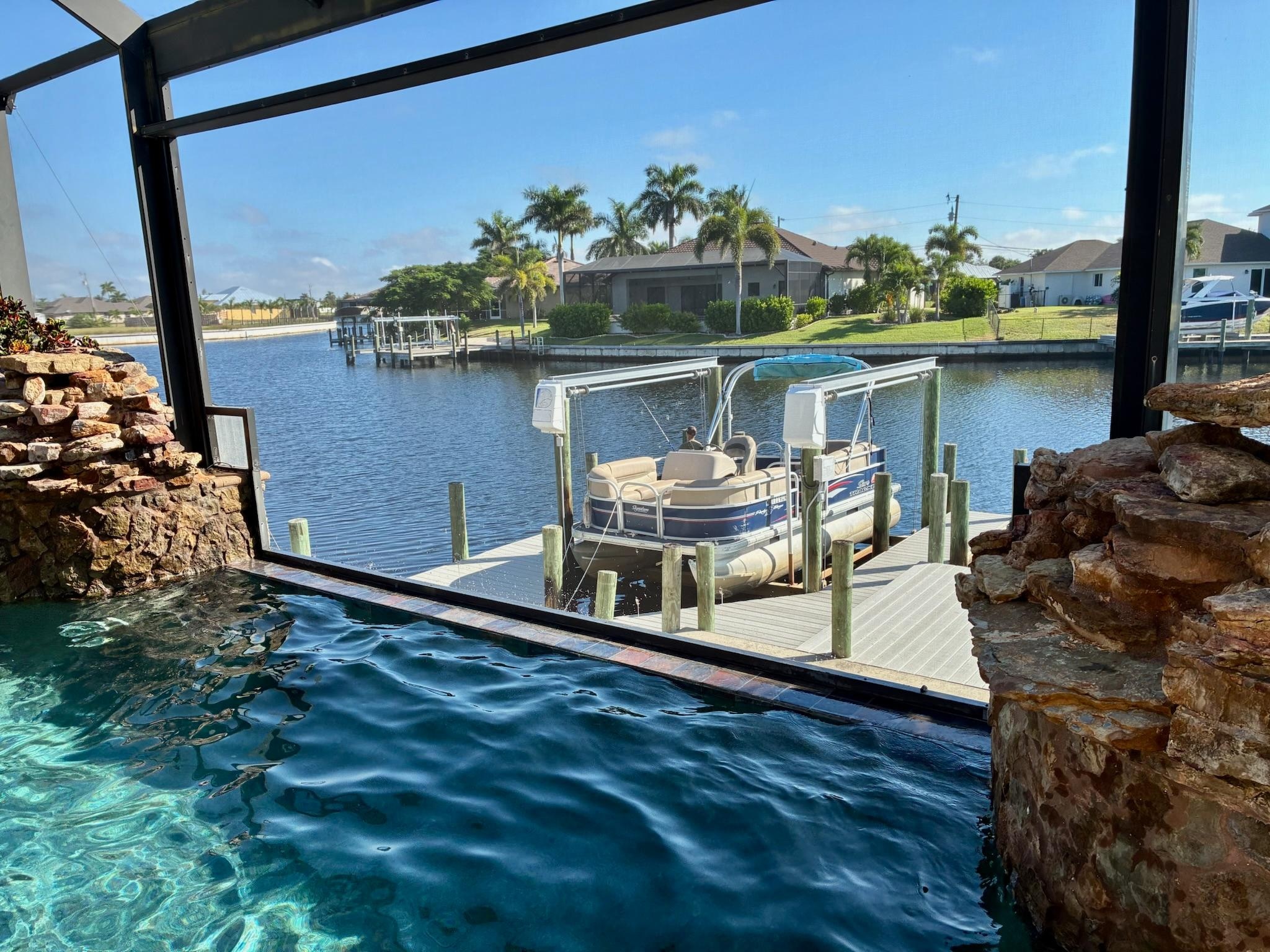 Located on canal with golf access, private area, spacious open floor plan, short drive to all major shops, and a fun home to have for family and friends. 10-12 minutes from shopping area, 35 mins from Fort Myers Beach. A pontoon boat available for $700 for the week docked at the house. Extra charges are for heating of pool and the jacuzzi with a barbeque grill and tank for $240 for the week.