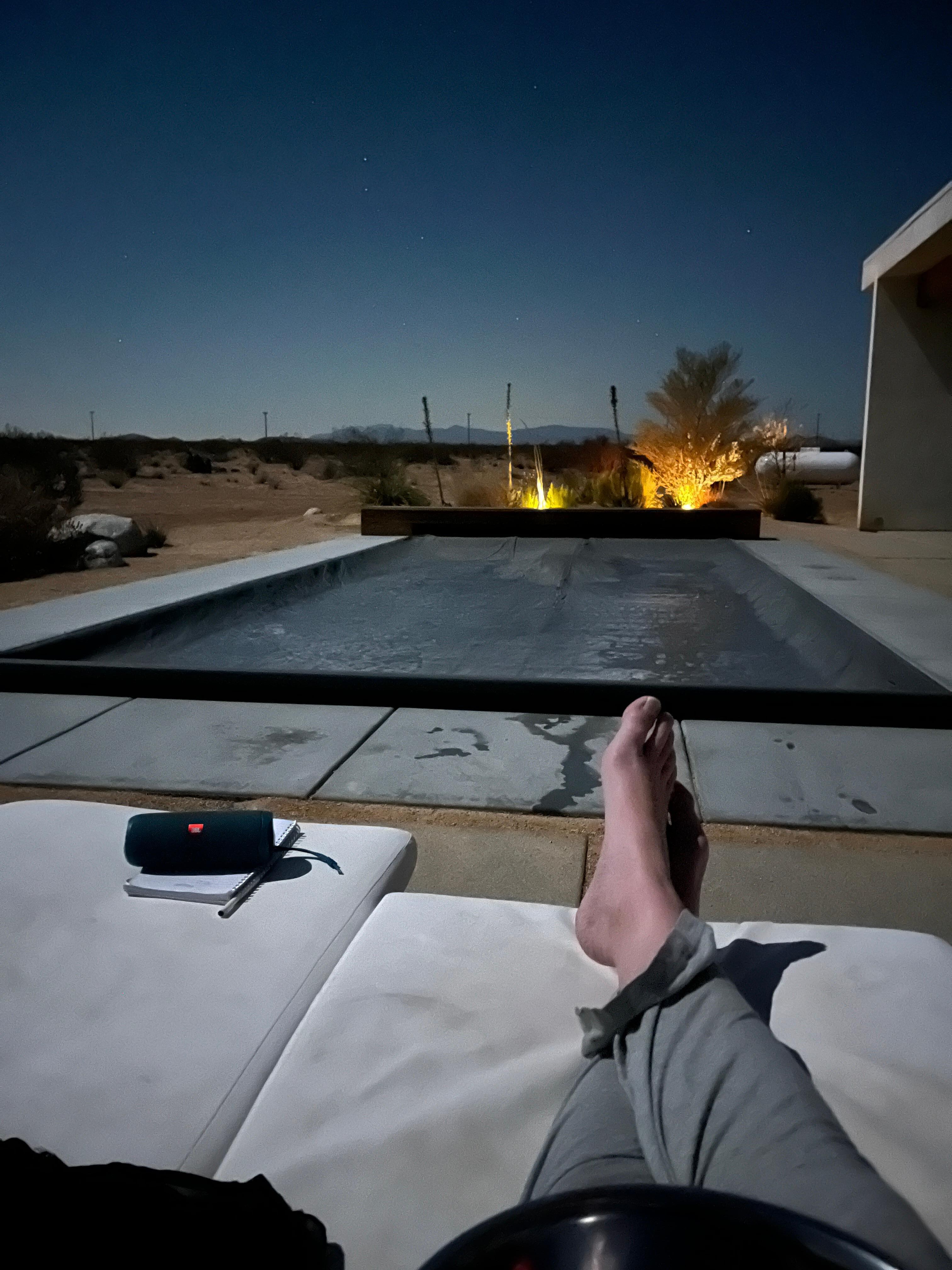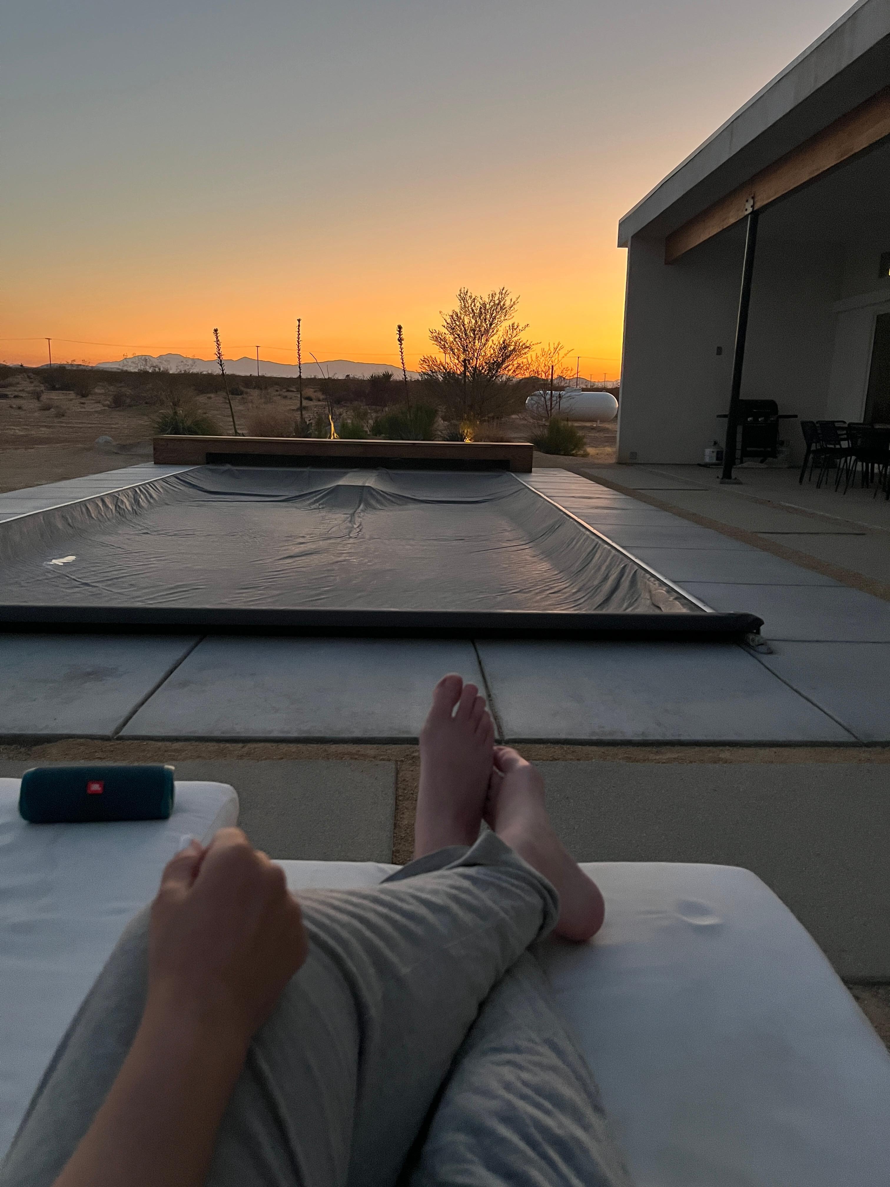 As you venture outdoors, you'll be captivated by the abundance of amenities that await you. Wake up to morning yoga or meditation while watching the sunrise on the back patio. Spend days cooling off in the in-ground pool and soaking in the sun's rays on the lounge chairs. In the evening, gather around the fire pit with your loved ones under Joshua Tree's famous, incredible starry night sky.