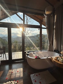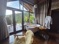 Monte Mauá Chalés offre 4 sistemazioni con aria condizionata, accessibili da corridoi esterni e con vasche idromassaggio private interne e caminetti. Queste sistemazioni, decorate e arredate singolarmente, hanno salotto separato e includono una scrivania e un tavolo da pranzo. I letti con materassi a doppio strato sono preparati con biancheria da letto di alta qualità. In questa struttura a 3,5 stelle le sistemazioni comprendono angolo cottura con piano cottura, microonde, sala da pranzo indipendente e pentole/stoviglie/utensili. I bagni includono vasca e doccia separate con una vasca idromassaggio, accappatoi e asciugacapelli.