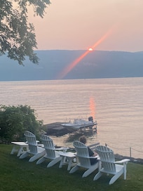 We had a wonderfully relaxing week-long stay in the DeMarcos' lakefront cottage. The hosts provided everything we needed and more. The kitchen was well-equipped, and there were plenty of pillows and blankets for the comfortable beds. We particularly enjoyed the small watercraft that were available to us on their private waterfront, as well as sunning on the swimming raft and dock. The lake water was warm and inviting! The porch was our favorite for coffee, meals, reading and family games, but there were several other outdoor areas we also enjoyed including the fire circle and hammock. The wifi was great for our 3 adult kids who worked throughout the week. We appreciated the communication with our hosts prior to our stay to answer questions, and they quickly responded to questions we had during our stay. We are grateful for a great family vacation! Thank you, DeMarcos!