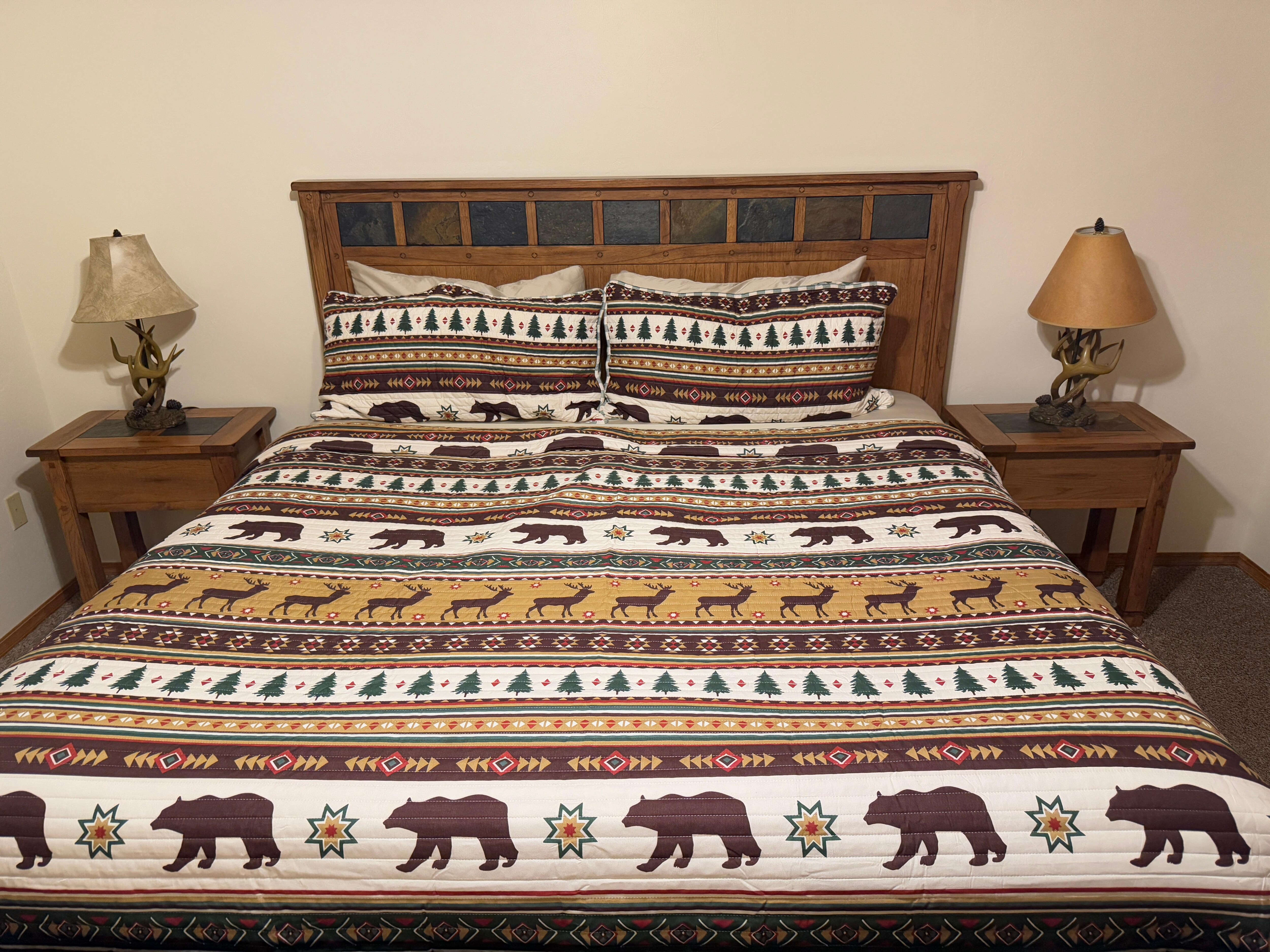 クウェイルクロッシングロッジには、3つのベッドルームと3つのバスルームがあります。 ダイニングエリアとシェフのキッチンに通じる大きなリビングルーム。 リビングルームには50インチのHDワイドスクリーンTV / DVDとwoodストーブが備わっています。 この家は1つのレベルであり、簡単にアクセスでき、高齢者や歩行障害のある人に最適です。 3つのベッドルーム、2つはクイーンベッド、1つはフルオーバーフル2段ベッドとツイントランドルがあります。 バスルームは3つあり、1つはフル、2つは3/4シャワーバス、1つはパウダールームです。 マスターベッドルームにはジャグジー浴槽があります。 ランドリー施設を利用できます。 この家には、ガスグリル、テーブル、椅子のある大きなデッキもあります。