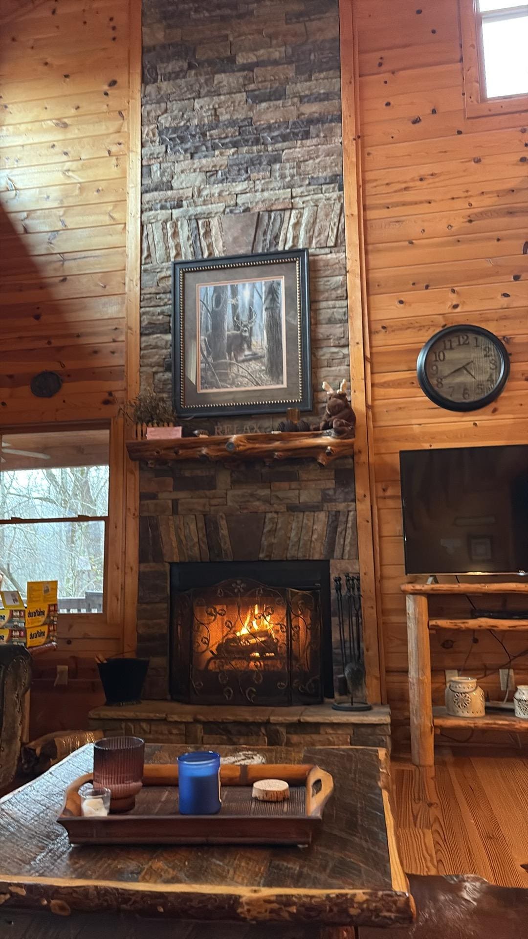 * 40インチのフラットスクリーンテレビとWoodの暖炉のあるグレートルーム