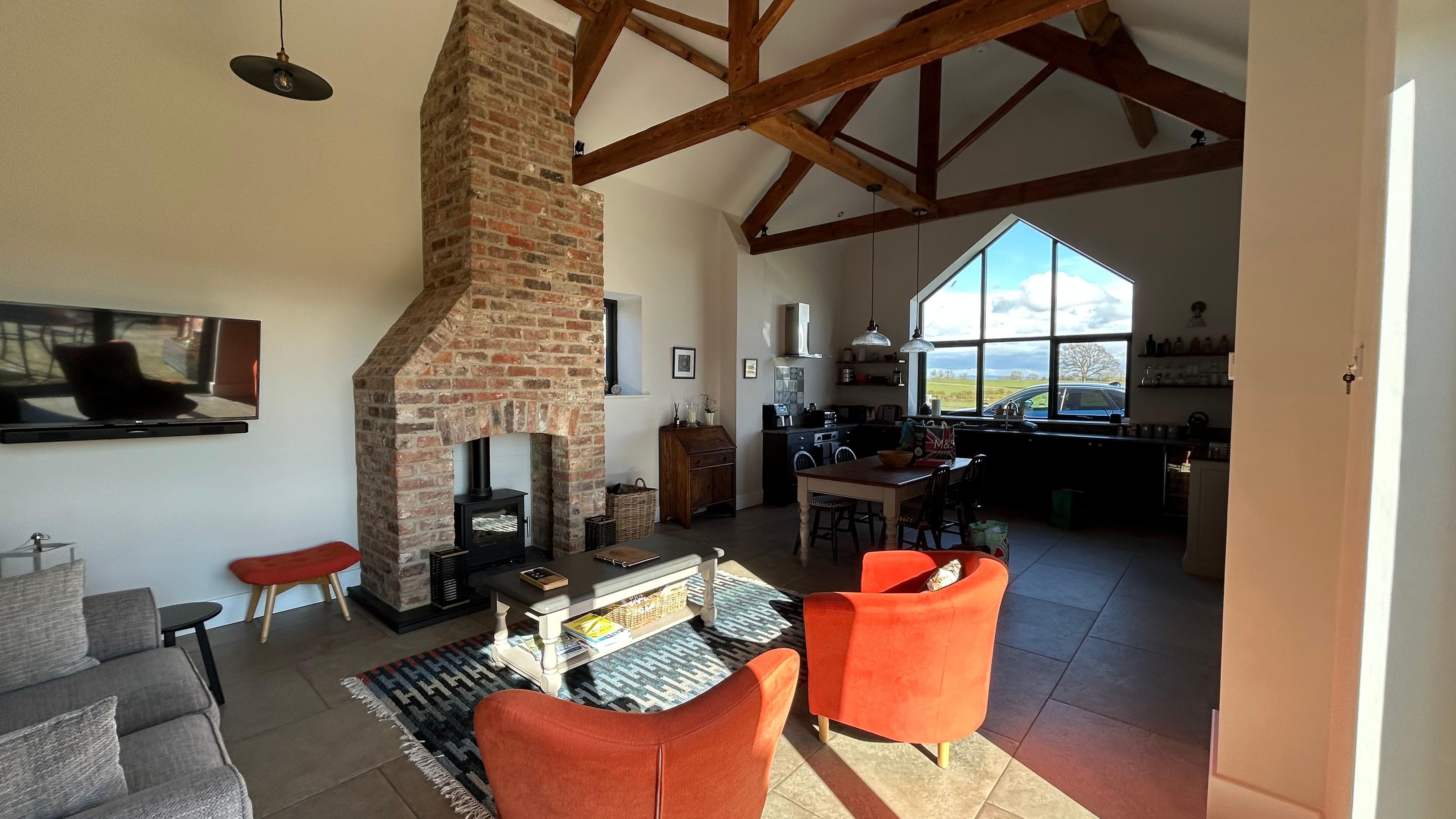 A very light and lofty living space has been created from the old farm stable on a working family farm. It boasts glorious views of the surrounding 240 acres of mixed farmland, including woods and an attractive pond area. The old stable has cosy underfloor heating throughout and has been decorated and furnished simply in sympathy with its very rural setting. It makes for the perfect romantic retreat or quiet family holiday.