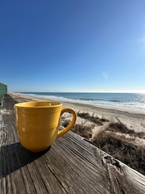If you want a beach house that is literally on the beach this is the house for you! Walk right off the gated porch and into the sand. We have a small dog so the gates were a huge plus not to have to worry about her getting out! She loves the beach as much as we do. We only used the king bed and it is very comfortable! Not to firm & not too soft. No, I'm not Goldilocks but as folks with back issues It is always a concern. You will have everything you need in the unit. The kitchen is nicely stocked. Steve, the owner, was easy & helpful when communicating. I contacted him twice about restaurant recommendations and an issue with the TV and both times he responded quickly. Also, there is a walkway across the street that gives you access to the Sound!! The only criticism I might have was the carpet could stand a cleaning. Some stains but no odor and I did not feel grossed out like in some hotel rooms. I would definitely stay here again!