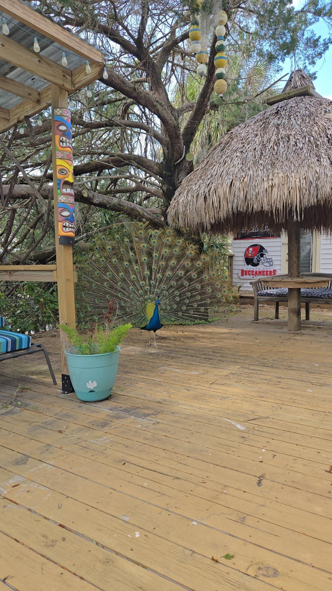 Perfect place to relax by the water. Nearby restaurant—Backwater Fins—had great seafood (Blue crab bisque and stuffed Cajun angels recommended). Short drive to Crystal River. We loved the daily visits from Ozzy, the resident peacock. Great place overall!