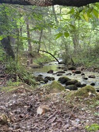 The farmhouse was the best!!! One of my favorite stays ever in a Vrbo It was such a cozy, peaceful space. And very clean. We loved sitting by the firepit and listening to the creek. I was impressed with the outdoor lighting, too. There were charming lights overhead and the pathway lights leading back to the house were on sensors. So, they lit up like magic!All three rooms were so nice! I loved the master bedroom downstairs. But, at the same time, I was jealous of the two upstairs rooms my kids (6 & 9) slept in. Haha.We only stayed two nights, but I could definitely see myself going back for a longer stay. We were sad we didn't get the chance to pull out the ping-pong table. But, we had an exciting few rounds of cornhole!! Everything was very well organized and easy to locate. There was even a wagon available to ferry wood over to the firepit from the car. So many lovely, thoughtful touches. Misti is a wonderful host
