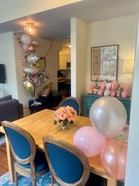メインのリビングスペースに入ると、自然光、高い天井、大きな窓、オープンフロアプランがそよ風を楽しませてくれます。 上品にデザインされたキッチンには、真新しいステンレス製の電化製品を備えた十分な調理スペースがあります。 キッチンの向かいには、リビングルームに通じる指定のダイニングスペースがあります。 ダイニングテーブルは4人掛けまたは最大6人のラッキーゲスト用に拡張可能で、長期滞在のためにここにいる人のワークスペースまたはオフィスエリアとしても使用できます。 リビングルームには、快適なクイーンベッドに変換するソファが備わっています。 アプリストリーミングアクセスを備えた大型のフラットスクリーンテレビもこのスペースに便利に配置されています。朝のニュースにうれしいひとときをお過ごしください。 シャワーと浴槽を備えたフルバスルームは、リビングルームのすぐそばに��ります。