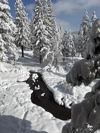 The condo had everything we needed, comfy beds, cooking items, extra blankies, plenty of towels, dish soap, laundry soap, TP, paper towels and a shuttle to Northstar. We saw the guys snowplowing and shoveling every day. Beautiful views and a little stream outside of the balcony. We bought a box of fire logs and enjoyed the fireplace nightly. We did not go to the hot tub, but it is worth noticing it is pictured and listed as an amenity, but if anyone wants to use the pool, hot tub or game room, it is 10 per person per day. It is not actually included in eve pricing for the stay. The amount of steps along the walkway was not an issue for our family, but if someone has a problem with their heart, hip or knee (anything that causes a walking hardship), they should understand this is not a spot where you park and walk directly to the condo. The window blind in the front first floor room and the slider door of the living room were not functional, but we made it work. Overall, we were very happy and would definitely choose it again.
