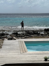 The oceanfront private pool is shared with both sides.