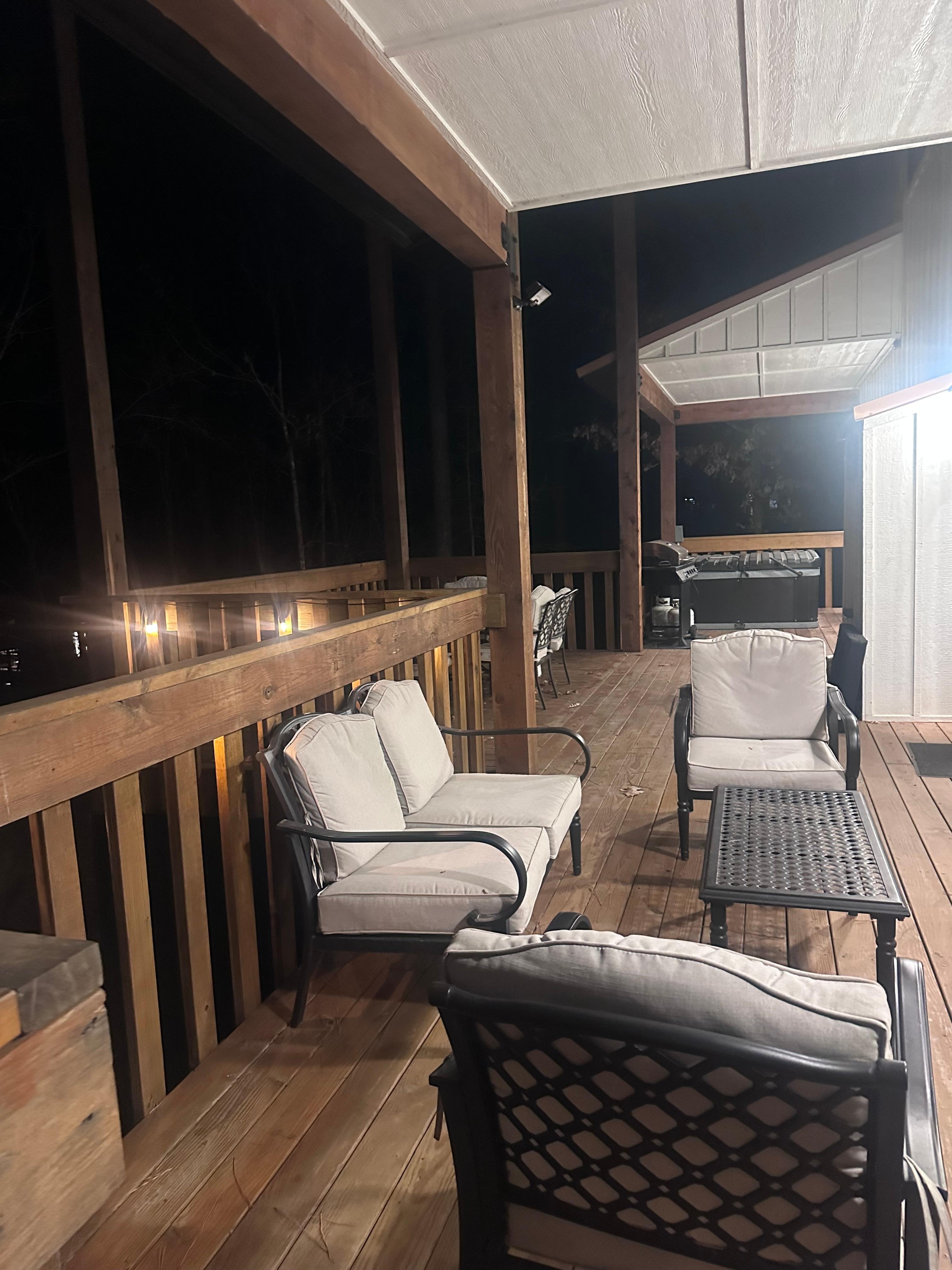 - Furnished porch w/ hot tub, gas grill (propane provided) & dining area