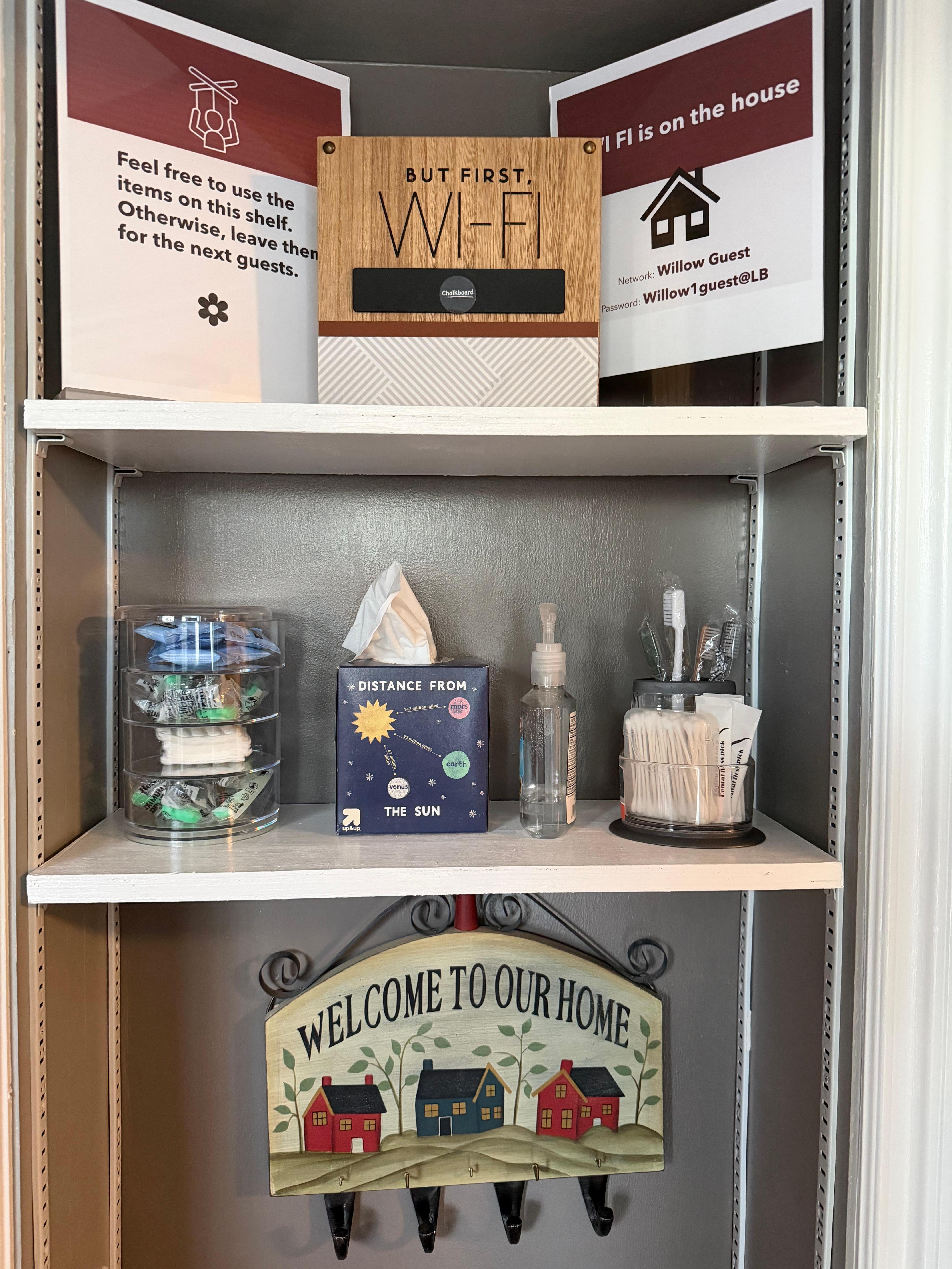 - Kid-friendly: outlet protectors are installed throughout the home, and cleaning supplies are stowed up high