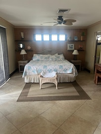 玄関を歩くと、空のように見えるように描かれたアーチ型の天井に魅了されます。 リビングルームは魅力的でトロピカル、サンポーチ/テレビルームは快適で居心地が良く、ソファーベッドがあります。 キッチンは適切に「ビーチ」で、開いた棚と竹製のカウンタートップがあります。 キングベッドとwのチェストを備えたマスターベッドルームは、トミー・バハマ様式の聖域です。 2番目のベッドルームにはツインベッドがあり、明るくフロリディアンです。