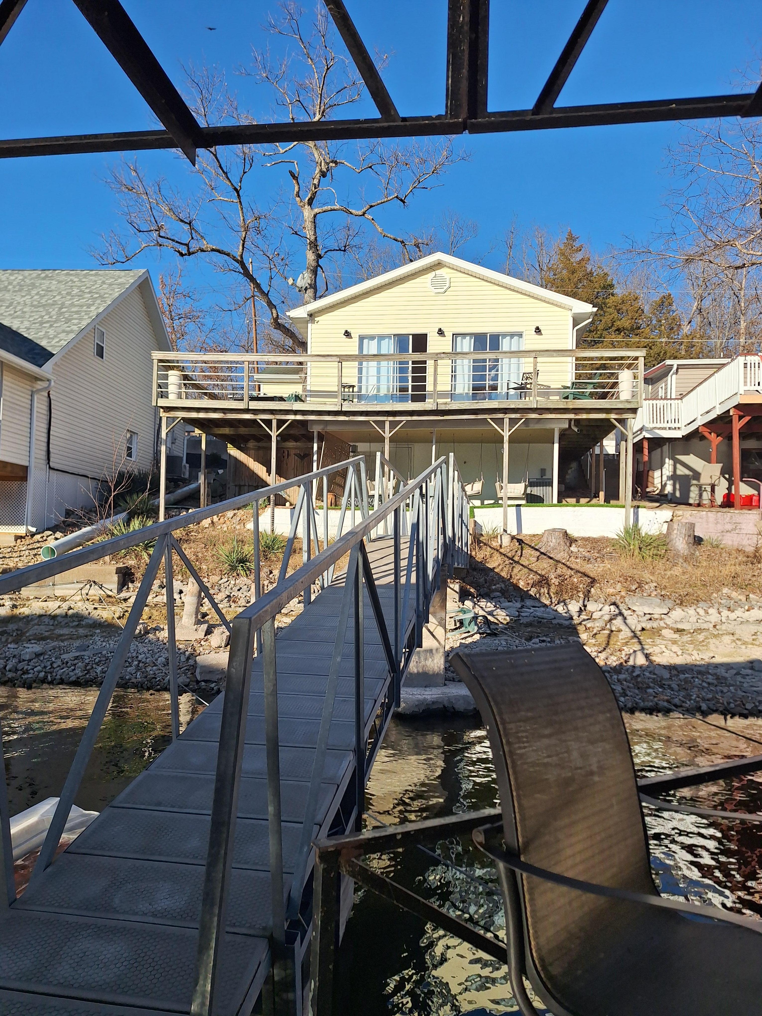 Only a few steps away from the water with an open, lighted dock. Enjoy the entire house for your friends or family to get away and enjoy the peaceful lake life. Great view, wrap-around deck, with close parking. Entertain on the dock that has a seating area, bar, and plenty of space to relax.