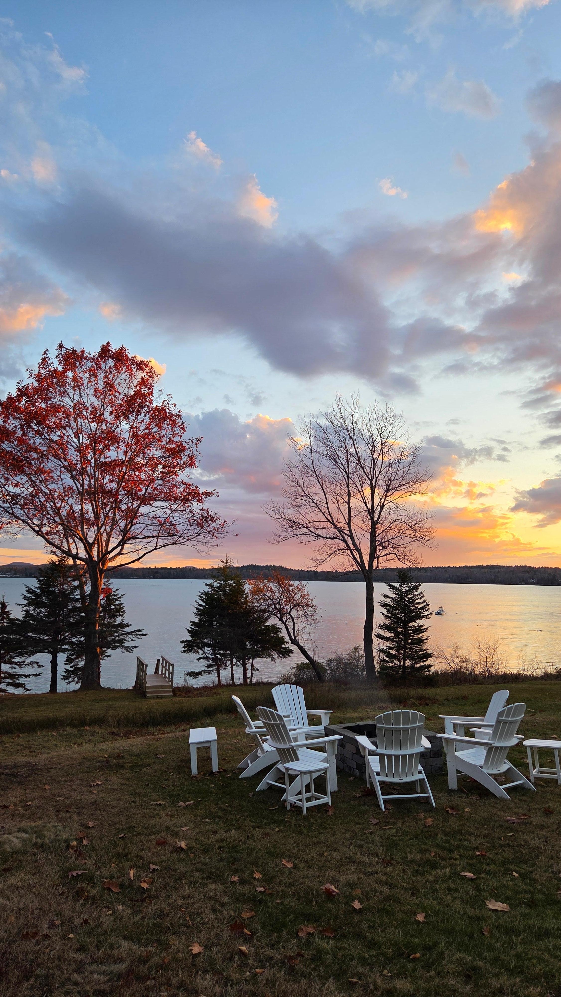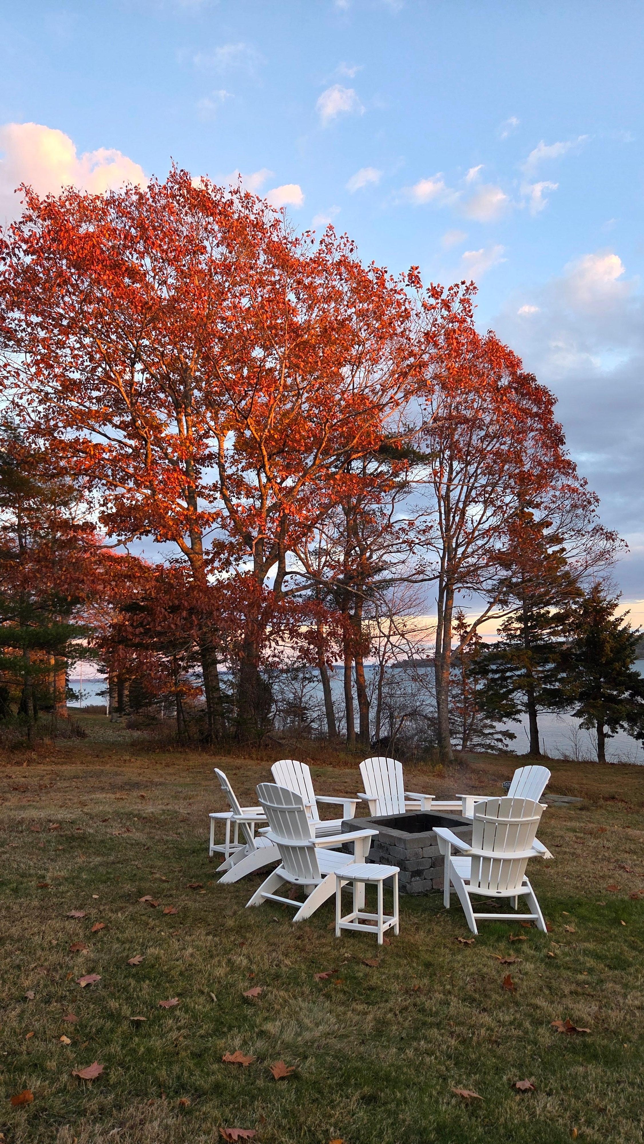 Oceanfront-shore access-fire pit evenings-Acadia NP Mountain views