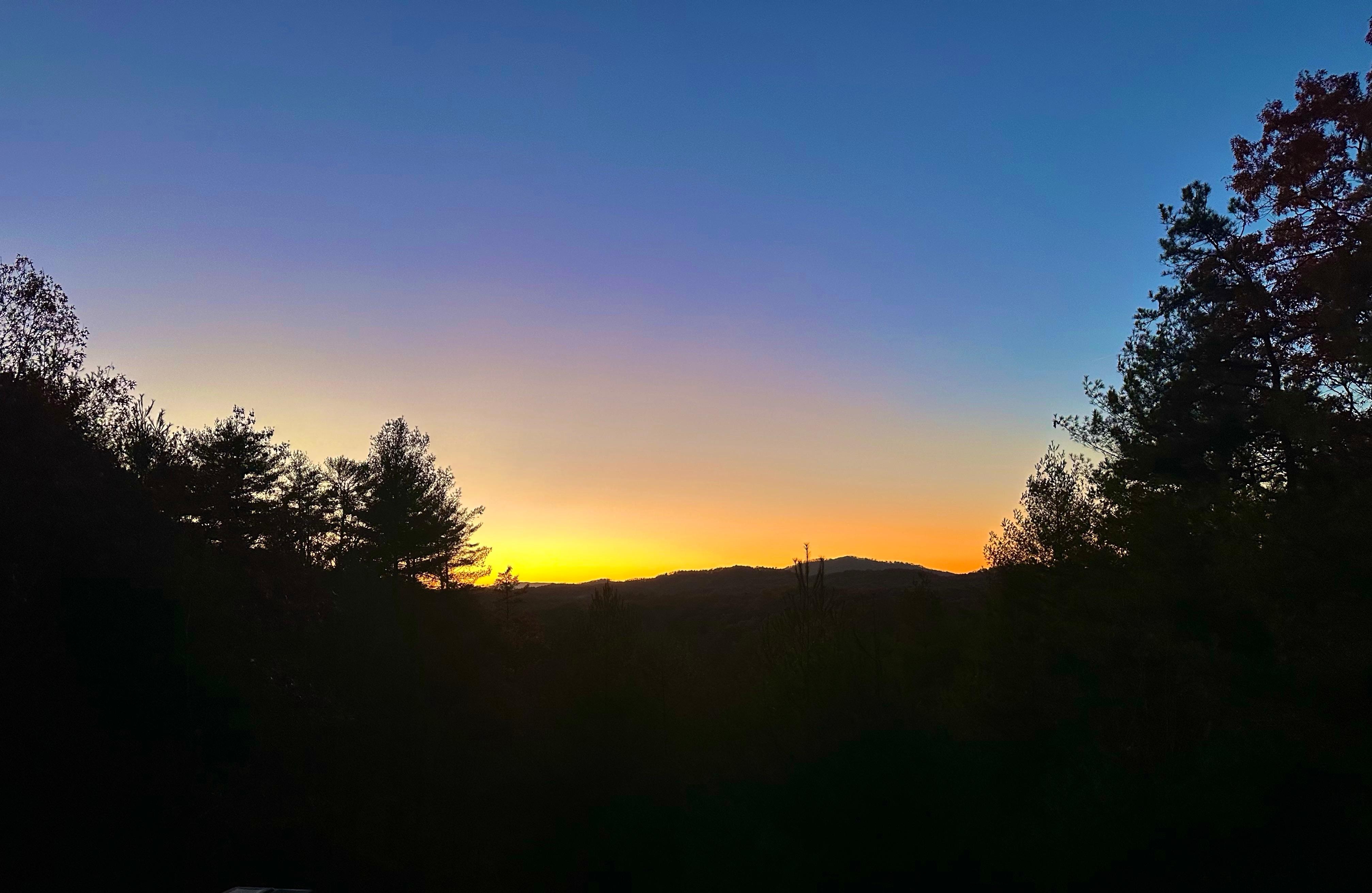 The cabin sits several miles away from any main roads so you won't hear the sounds of traffic, and because the cabin sits at 1,900 feet atop a mountain ridge line of Poindexter Knob, you will hear the peaceful sound of the wind blowing over the trees and have a chance of experiencing snow in the winter.
