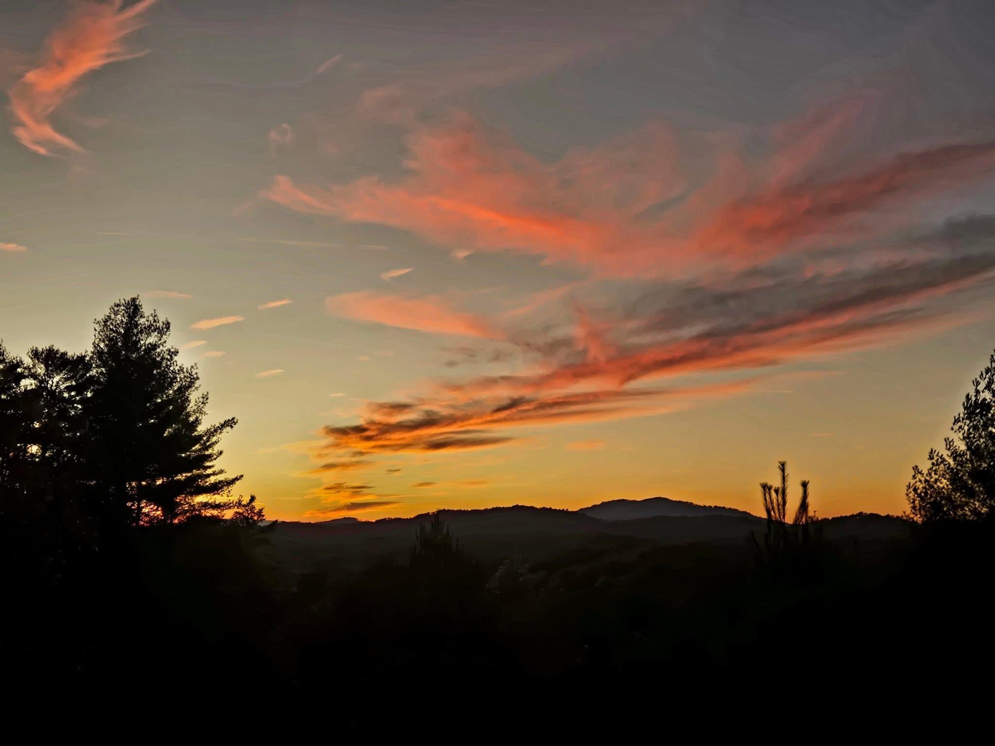Perched atop a mountain ridge at 1,900' of elevation, Sunset Mountain Lodge faces directly West to perfectly frame the sun as it sets over multiple layers of mountains each night. Whether viewing the sunset from the two-story picture windows in the living room, or on any of the three levels of deck or hot tub, you are sure to be in awe by the view!
