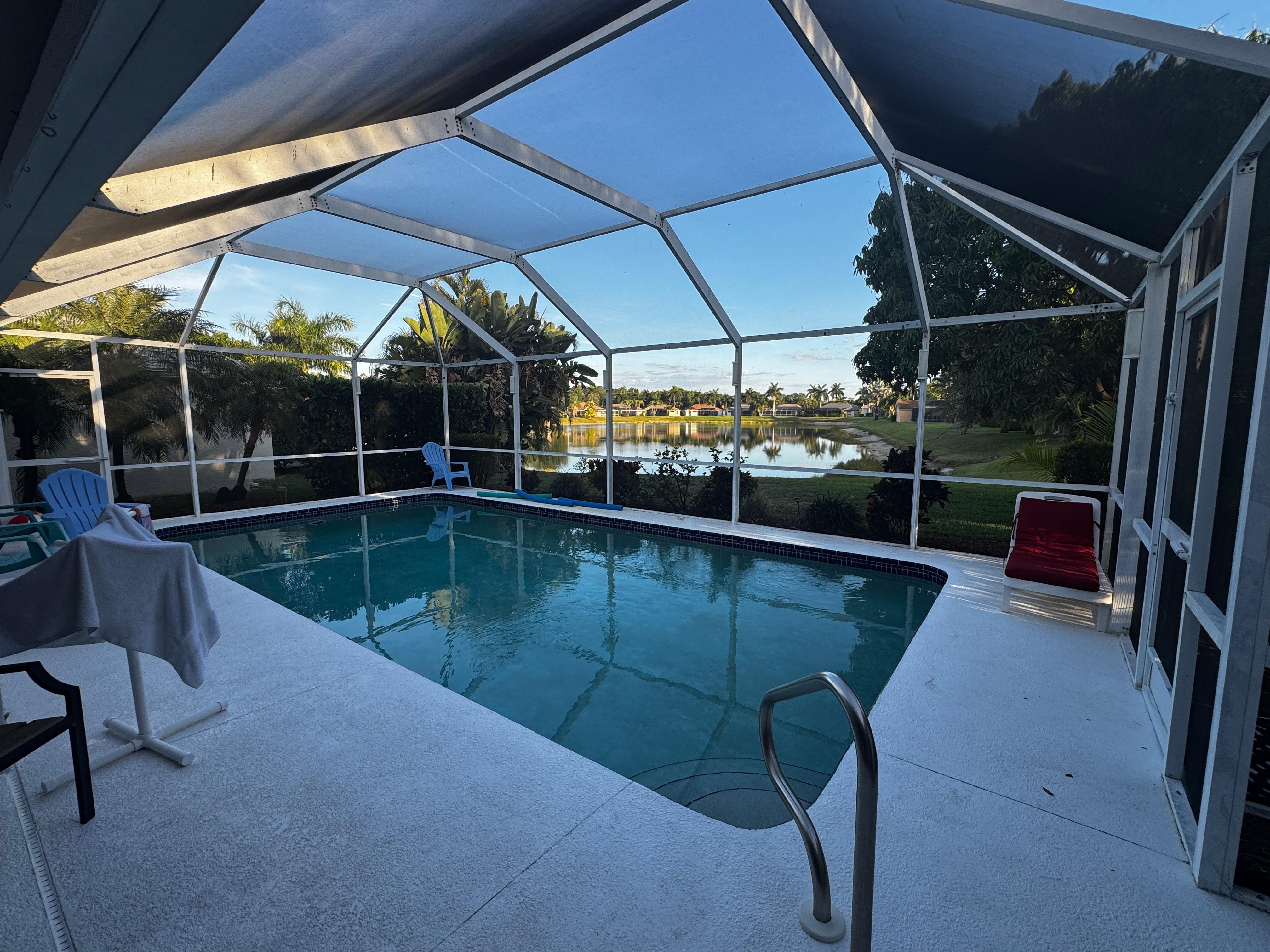 Your home away from home! Welcome to our beautiful, paradise home, Beso Del Sol (part of the Del Sol Collection in Naples), located in the upscale gated community of Briarwood. This Naples home features a Southern Exposure private screened saltwater pool with peaceful lakeside scenery where ducks and otters swimming by are not uncommon! This four-bedroom and three-full-bath home is equipped with all the amenities you need for an unforgettable vacation and is centrally located 10 minutes away from downtown Naples and sugar white beaches.