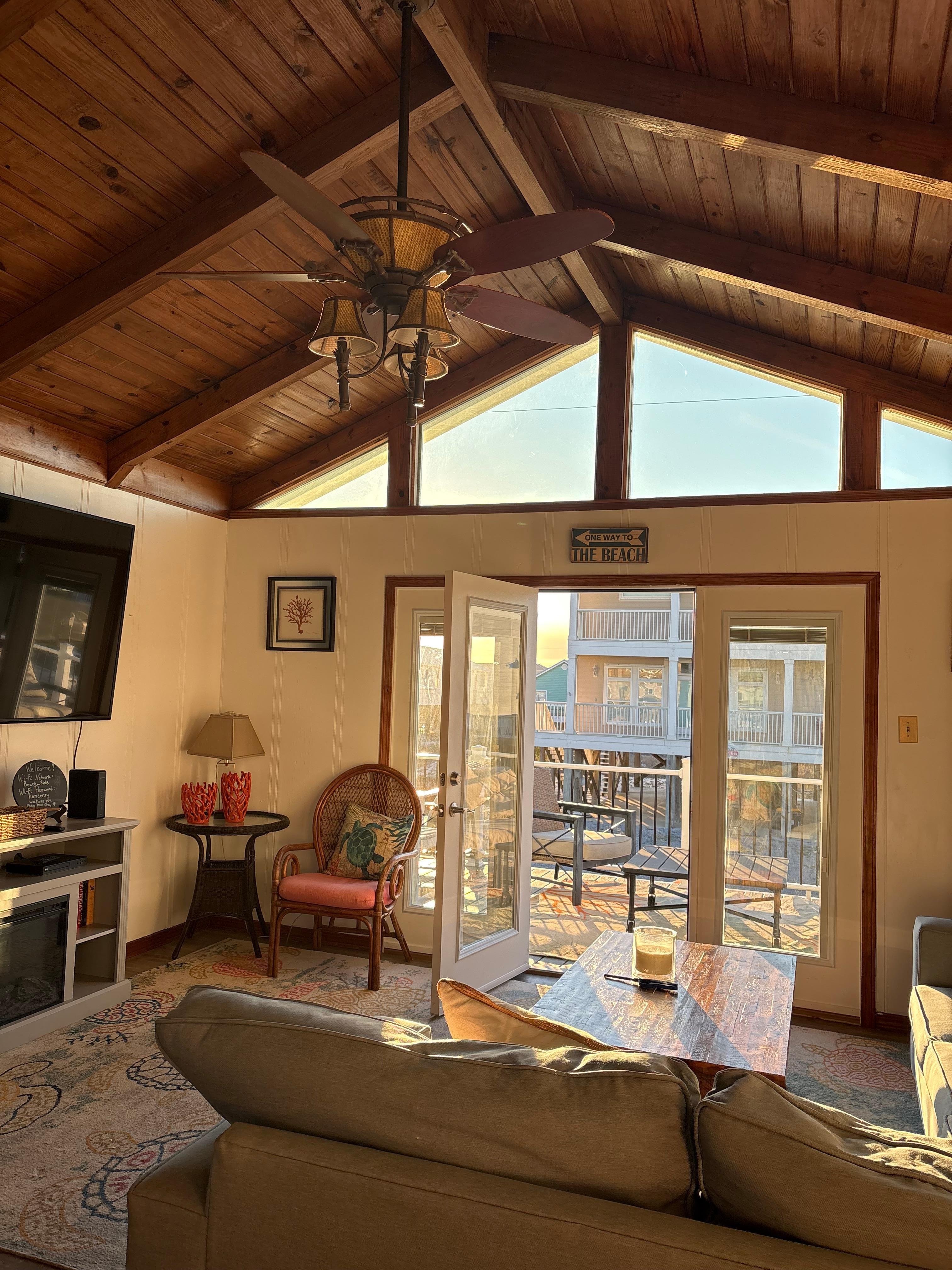 As you return to make breakfast, lunch or dinner, enjoy a spacious and fully stocked kitchen that opens itself to a large island both now have new quartz countertops and open living room. The large breakfast bar has 4 bar stools. The Dining Room table fits 4-5 as well. As you head to the beach, feel free to use the wagon downstairs to haul your kids or your stuff to the beach! Enjoy your movie nights in the living room on huge 75 inch TV with the family. Wireless internet makes it easy to enjoy streaming your favorite show but Streaming TV service has changed their rules...