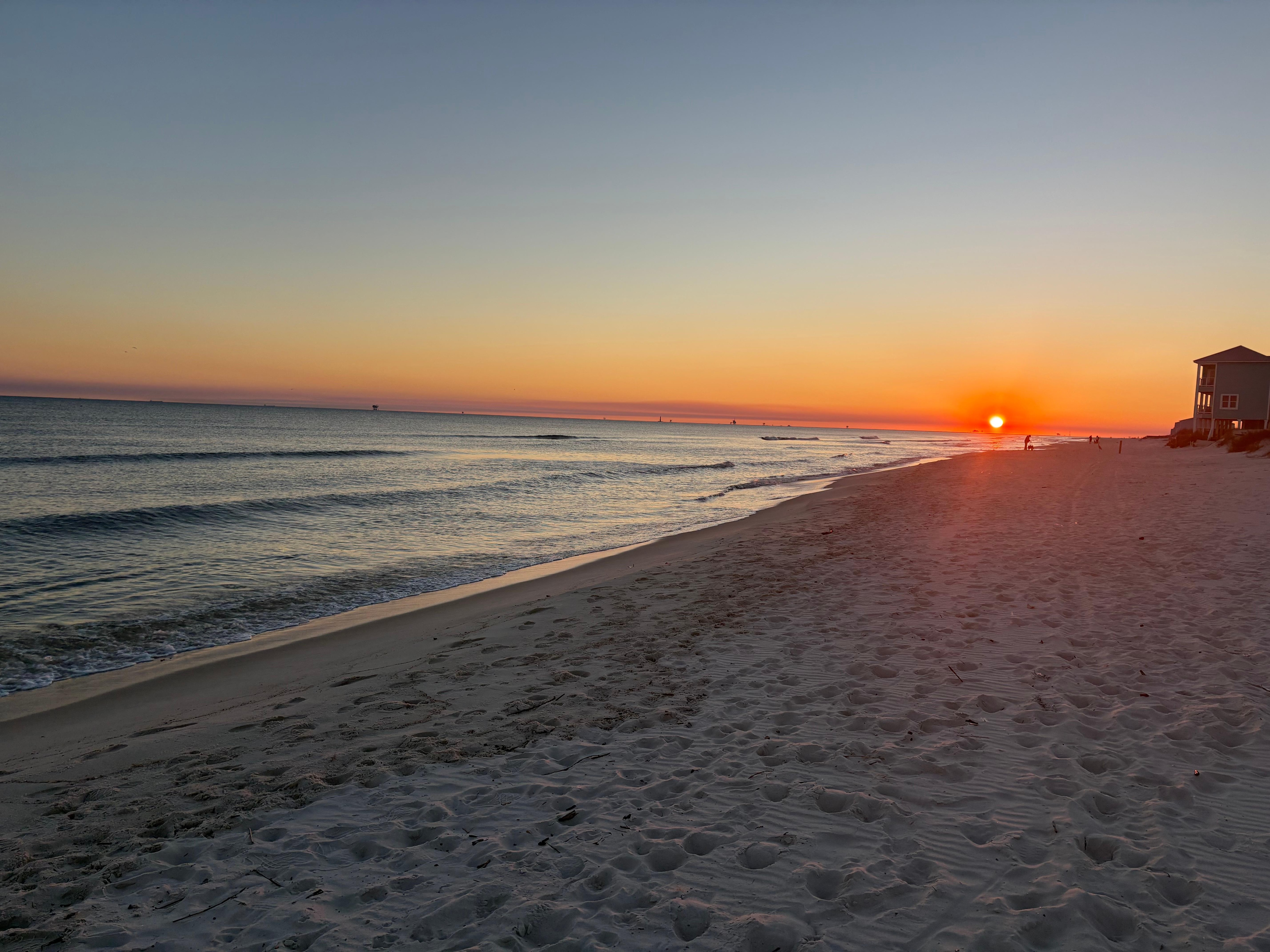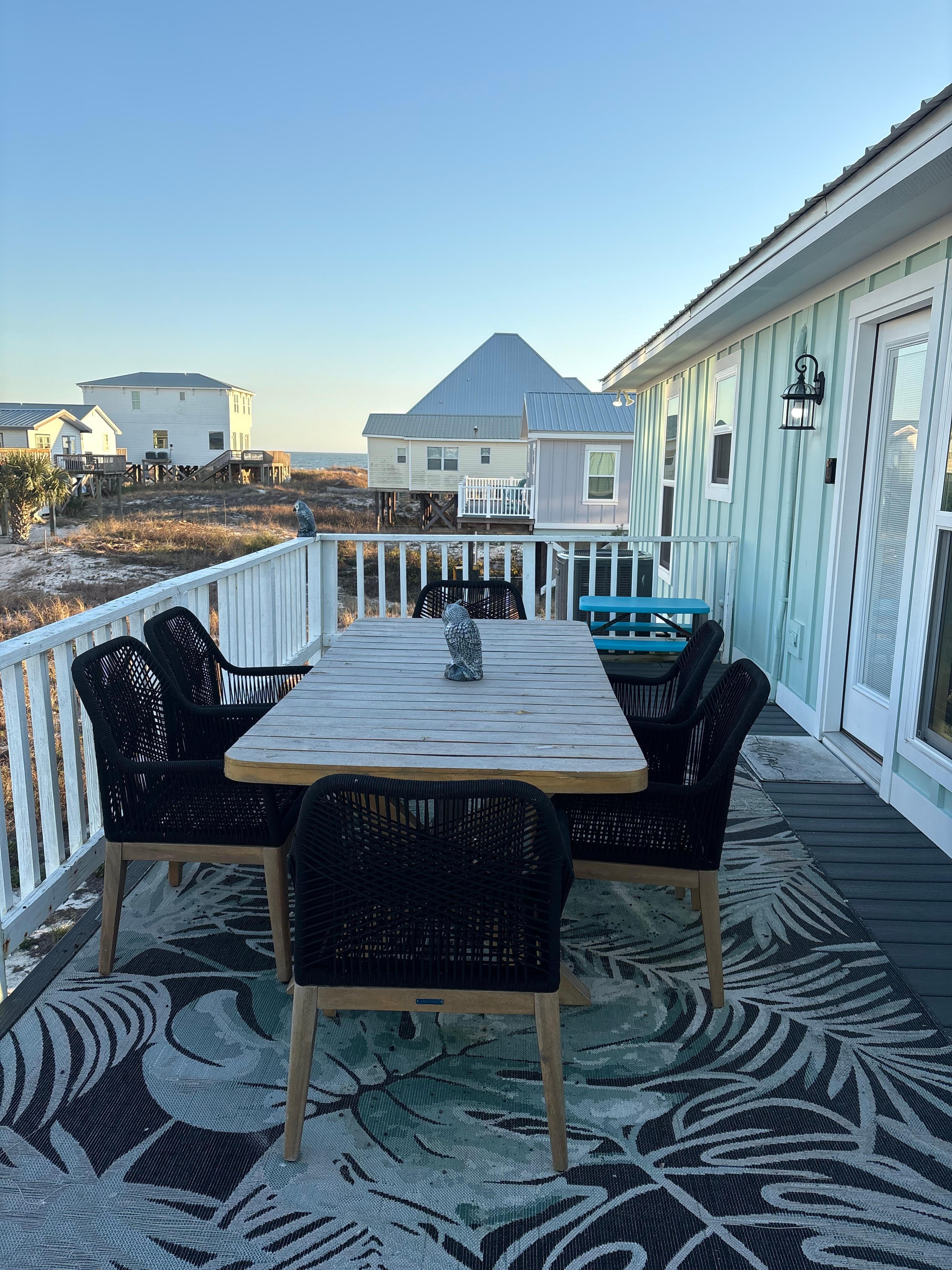 Start your vacation right and forget the cares of this world as you wake up and enjoy your coffee on the spacious front porch listening to the waves and watching the pelicans soar on the horizon. After your coffee, take a stroll on the white sand in the early hours to see the dolphins greeting you with the sunrise and before you come back in the house, there is a outside shower (Hot & Cold or warm) to rinse the sand off before heading upstairs.