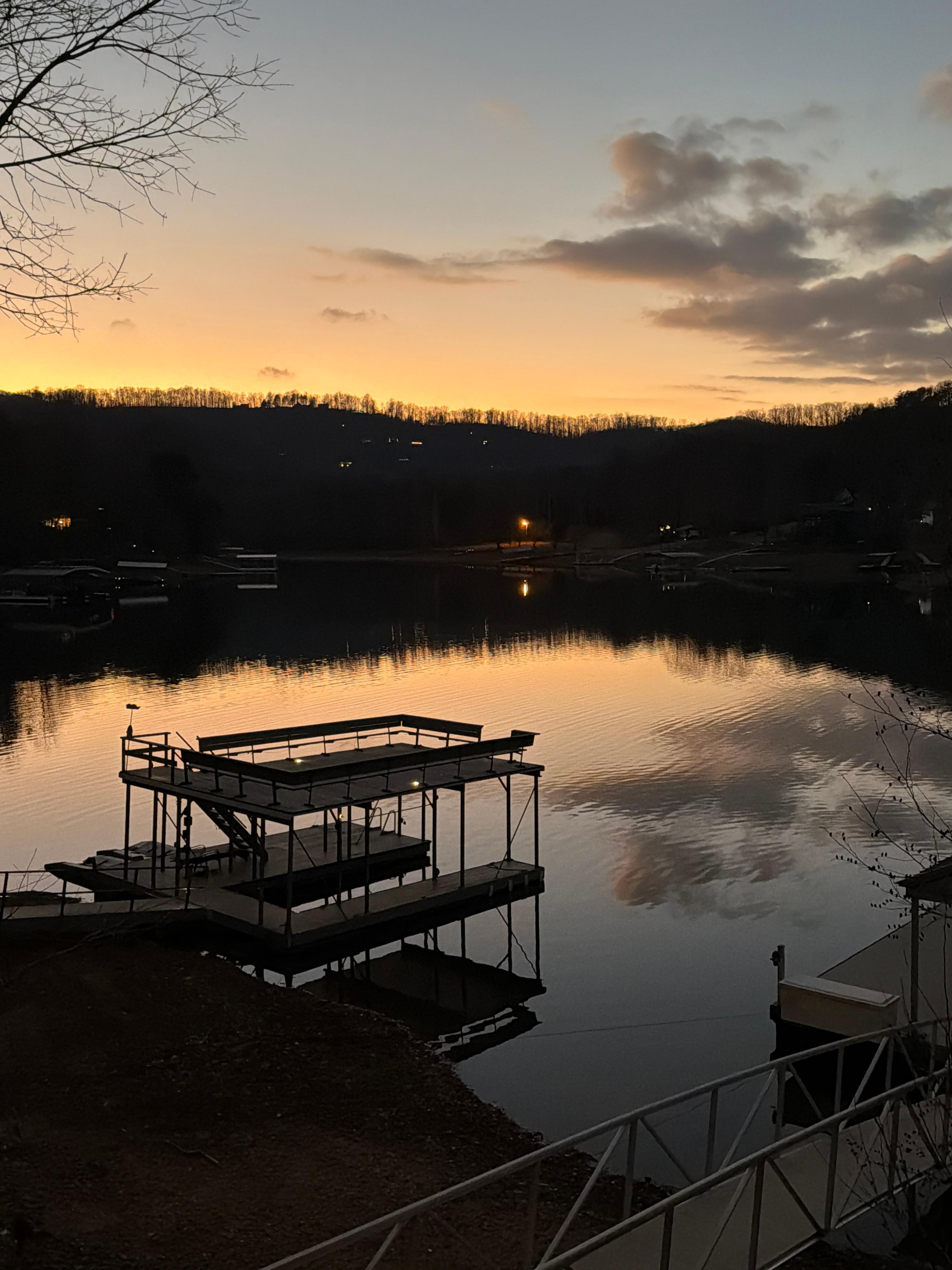 Prime lakefront living is yours at this Lake Chatuge retreat. Showcasing sweeping lake views and direct water access, this getaway boasts two decks and a deluxe private dock complete with a sun deck and step-down ladder for swimming. Rejuvenate in your private hot tub after a refreshing dip in the lake. The lower level deck offers a quiet perch to take in the views and the fully screened upper deck is furnished for outdoor living with a gas grill and outdoor furniture. The full kitchen comes well-appointed for home cooking and family meals can be enjoyed together at the dining table. In the evenings, unwind by the living area fireplace or break out the home's board game collection for a family game night. A home office adds a convenient work-from-home option and comes furnished as an available bedroom accommodation for larger group needs.