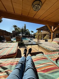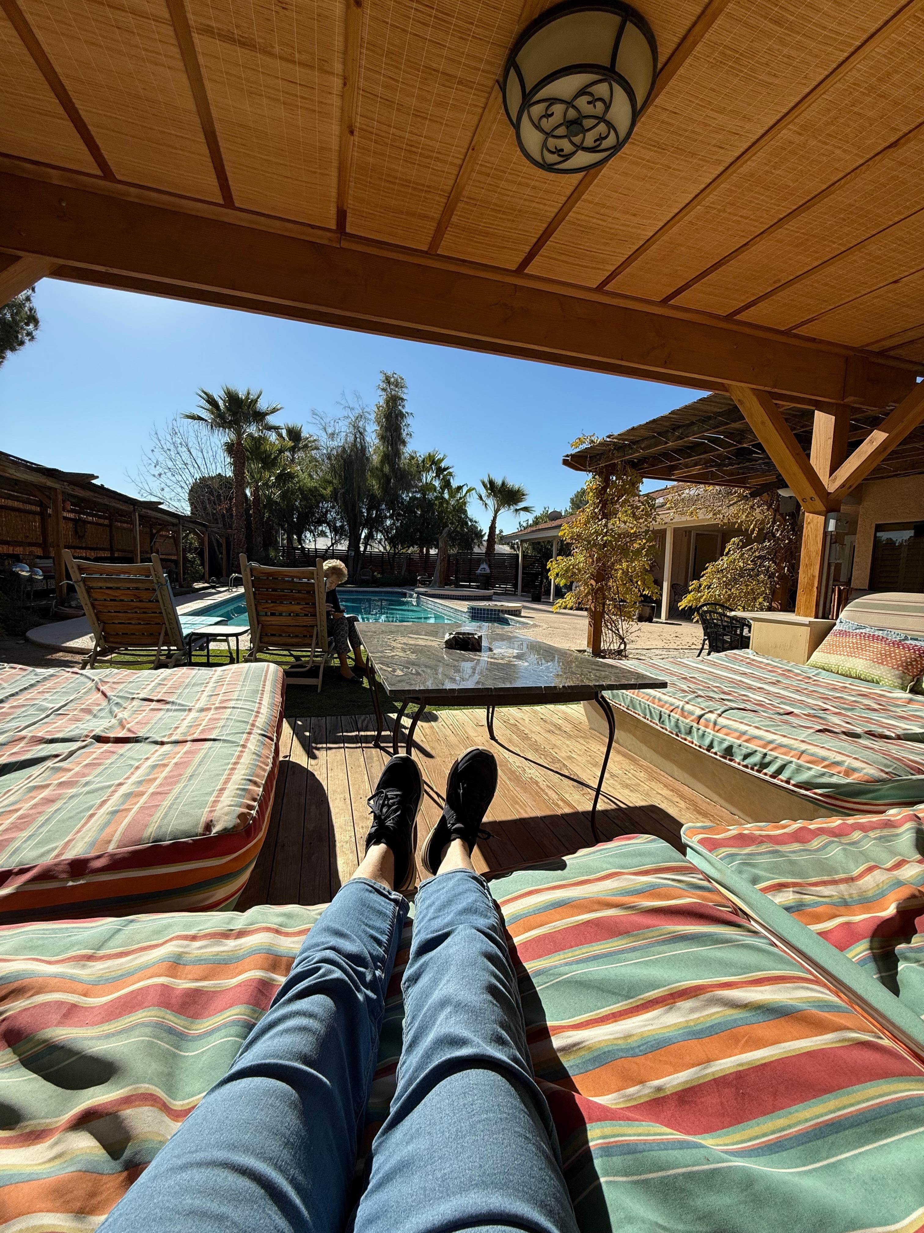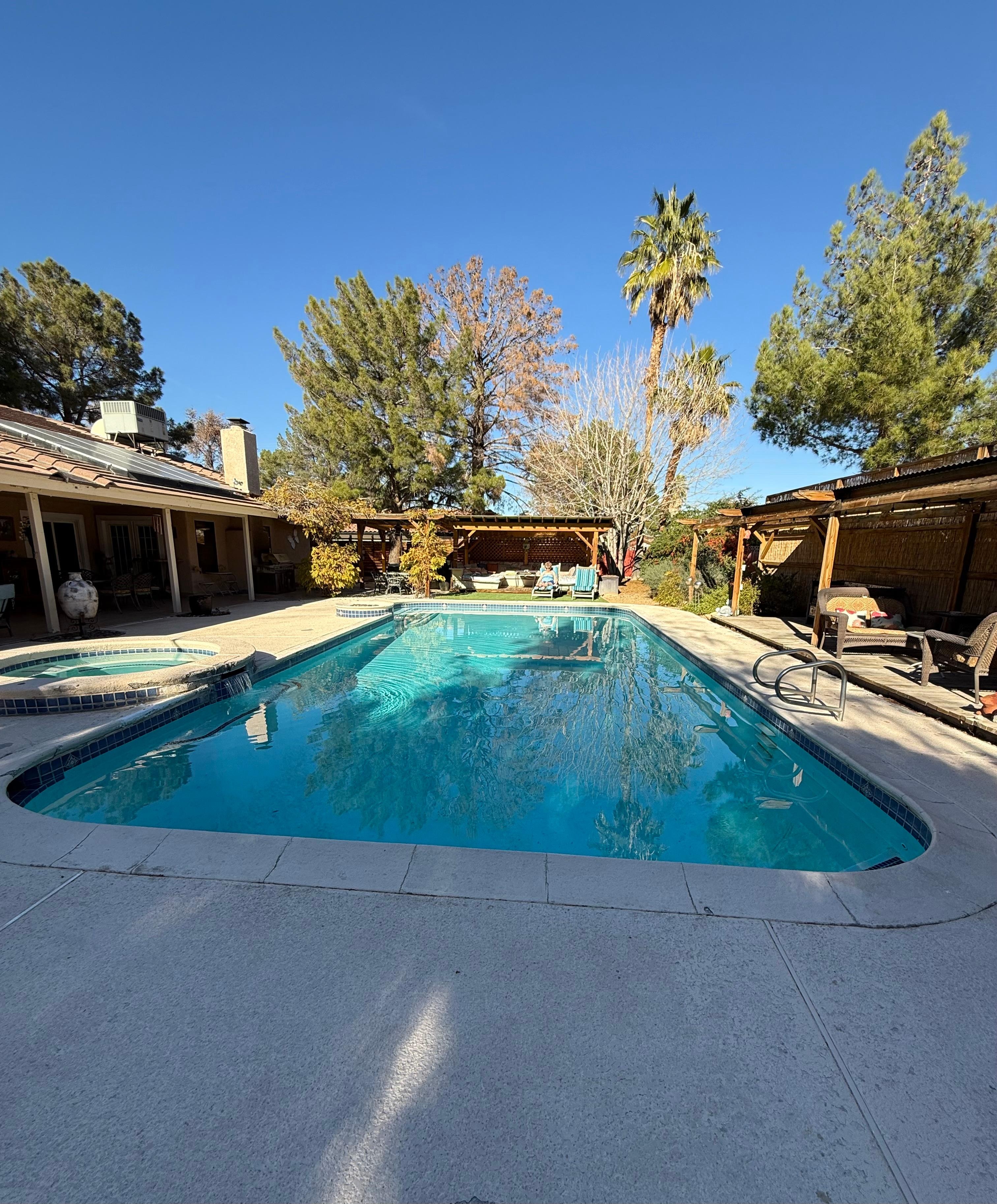 First, the pictures don’t portray the beauty of the house and backyard. I wish we had more time to spend in the backyard. The house has almost everything you need to cook meals, any spice you can think of, make sure to check before you buy. There are ample towels, reading materials and guides to dining. The house was spotless and ample areas inside and out to sit. I wish we were there when the pool was open, but the hot tub was very relaxing especially after a day of hiking. You do need a car to get around. The garage in the house is not available but it is on a very private dead end street. We enjoyed the decorations, fossils and art. It is definitely more of a home feeling than a sterile environment. A wonderful place to stay, about 15 minutes to the strip and airport. Hopefully, we will be back.