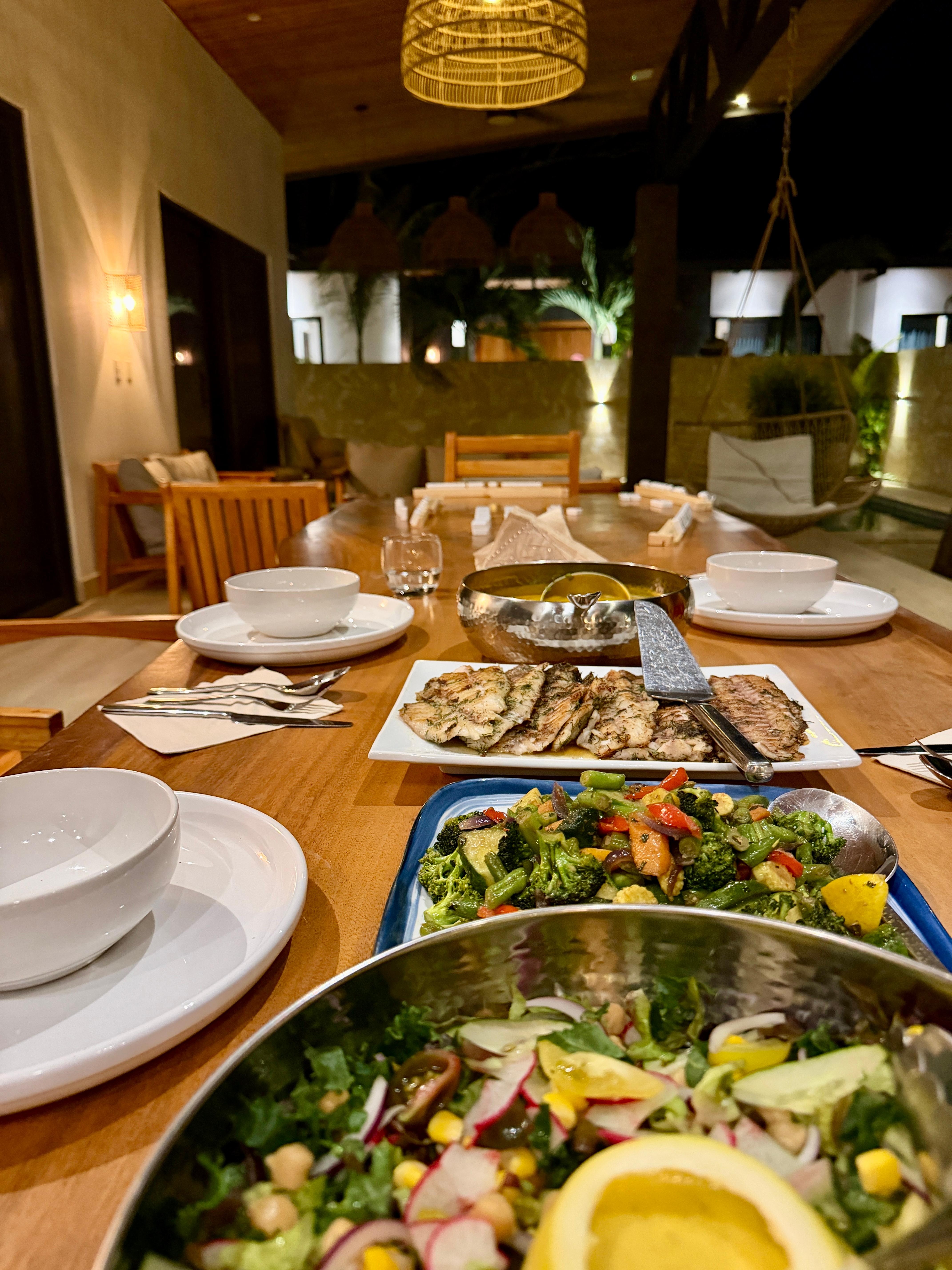 - Private oversized large outdoor lounge with living room and stunning custom wood dining table