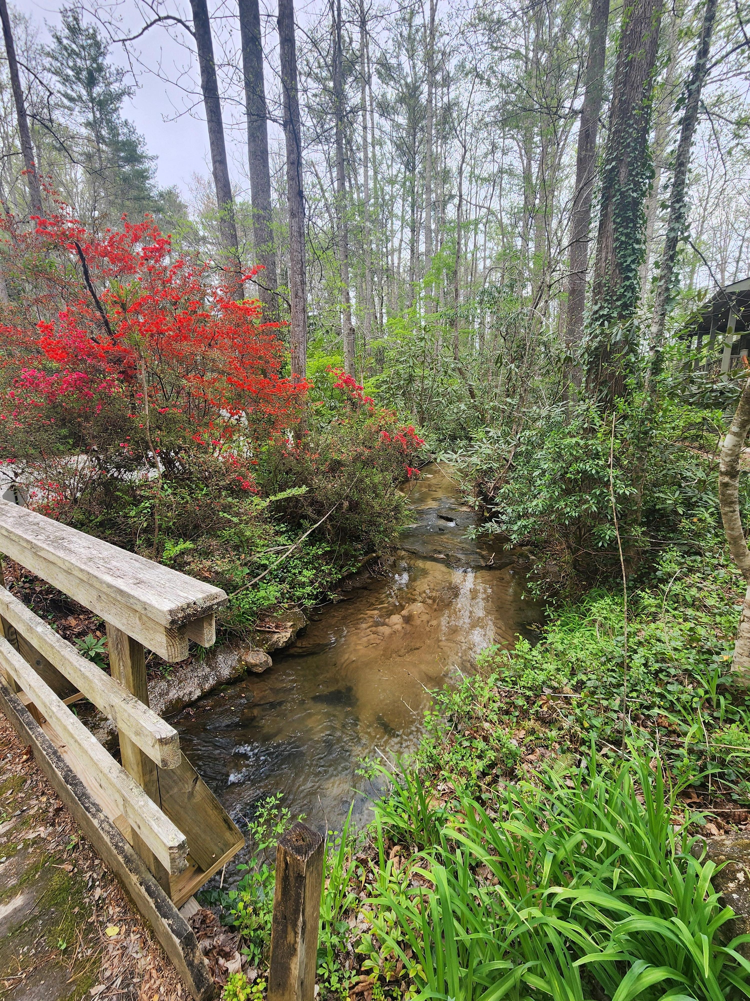 We searched for years to strike the balance between easy access to surrounding towns and activities, while also feeling secluded and private. It was critical to have easy, year round access, proximity to stores, restaurants, and activities, and great phone and internet service. But we also wanted to feel tucked away in our own world. We finally found the sweet spot with 2 lushly wooded acres and a stream, but positioned within minutes of downtown Hendersonville and Flat Rock, with a short drives to Asheville, The Biltmore, Brevard, and Saluda.
